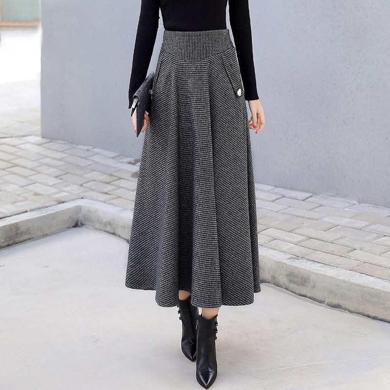 Шерстяной демисезонный длинный свитер, длинная юбка, высокая талия, А-силуэт