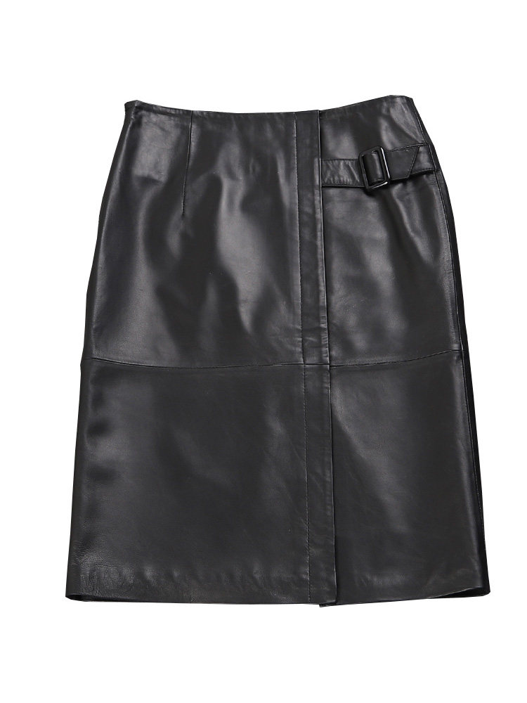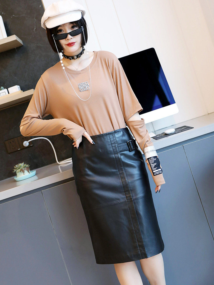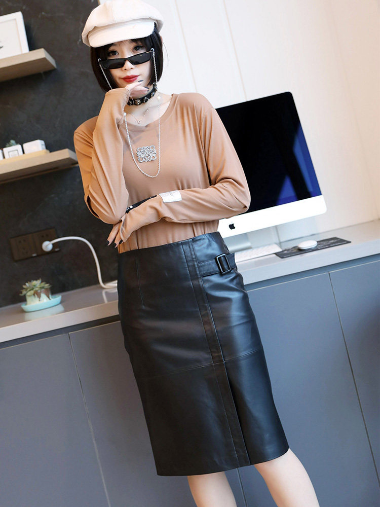 Демисезонная длинная юбка, высокая талия, из натуральной кожи, средней длины, с акцентом на бедрах