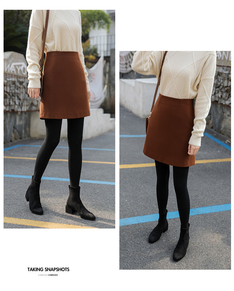 Зимняя шерстяная цветная короткая демисезонная юбка, увеличенная толщина, А-силуэт