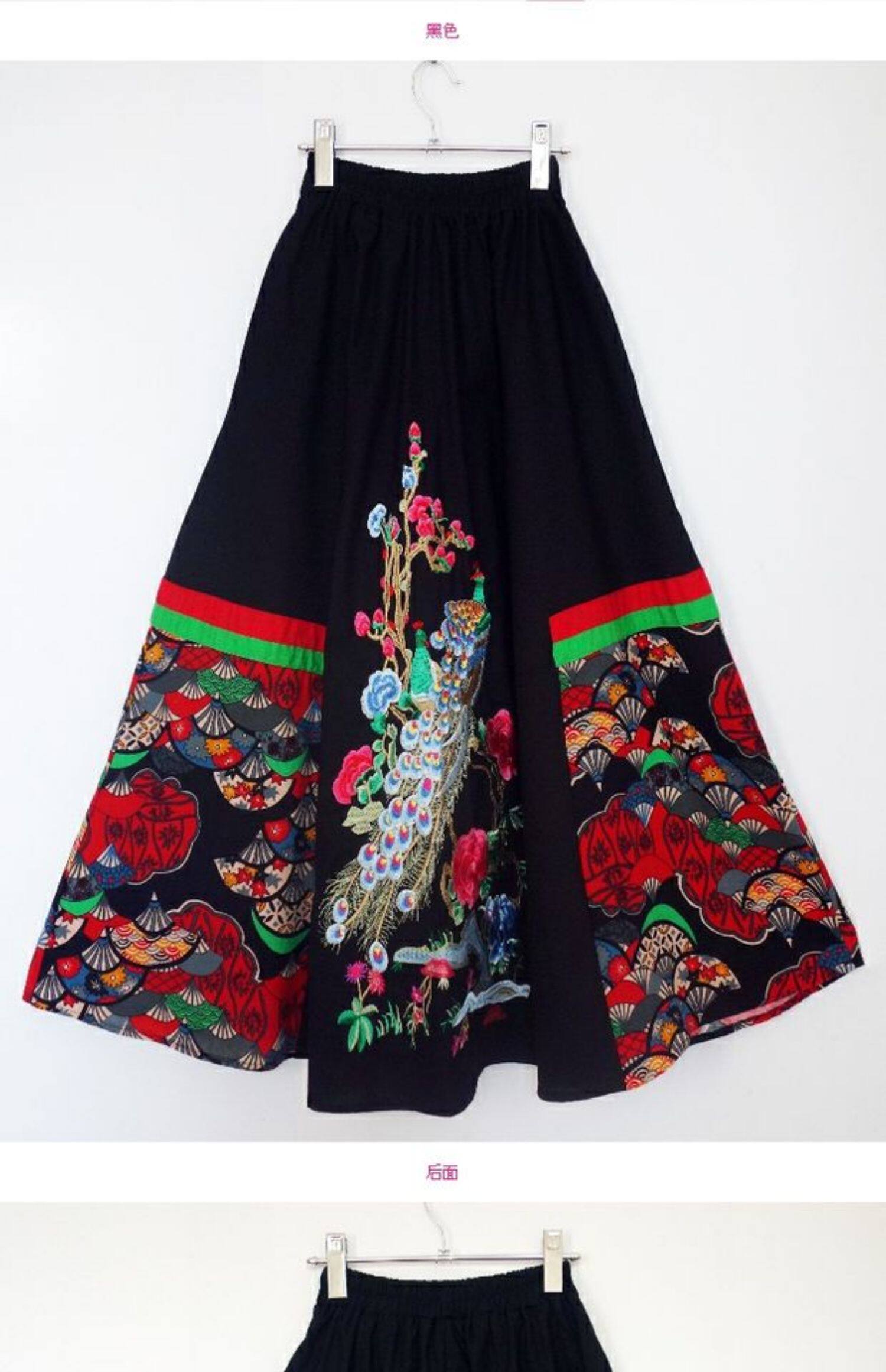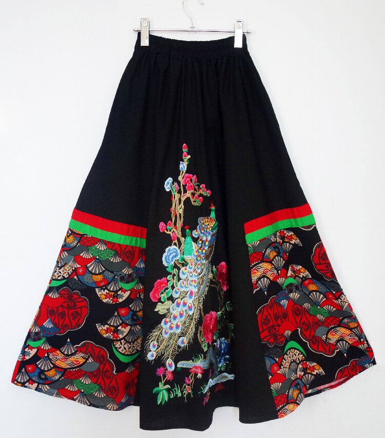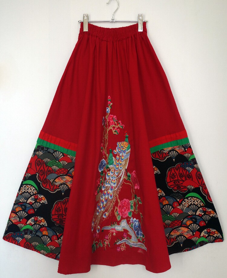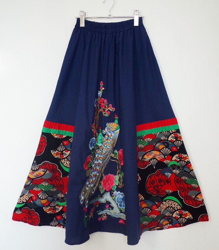 Юбка в складку, приталенная этническая длинная юбка, с вышивкой, эластичная талия, из хлопка и льна, этнический стиль