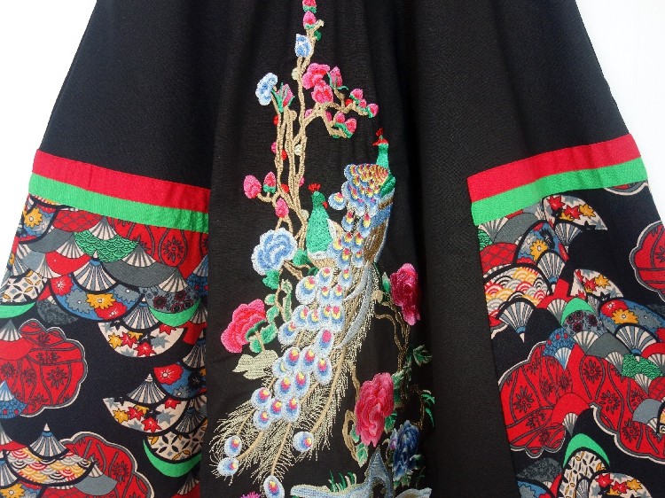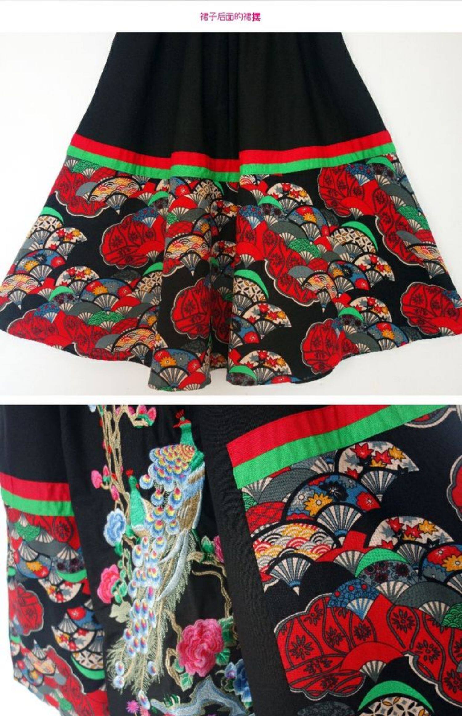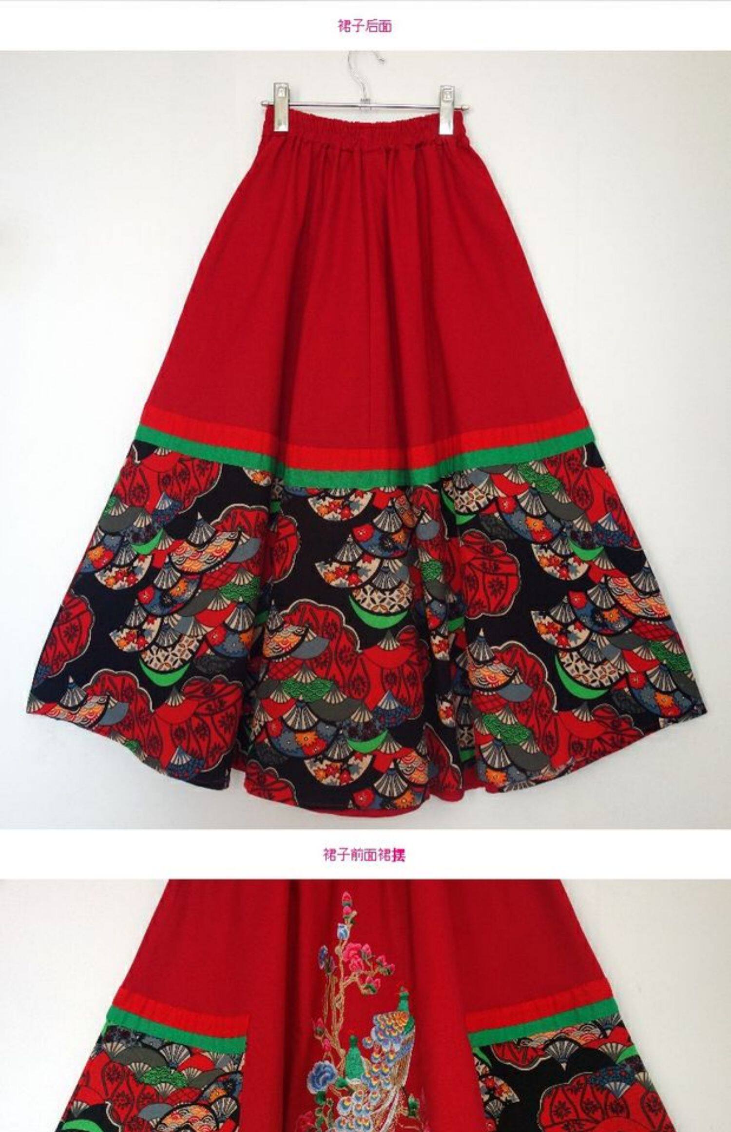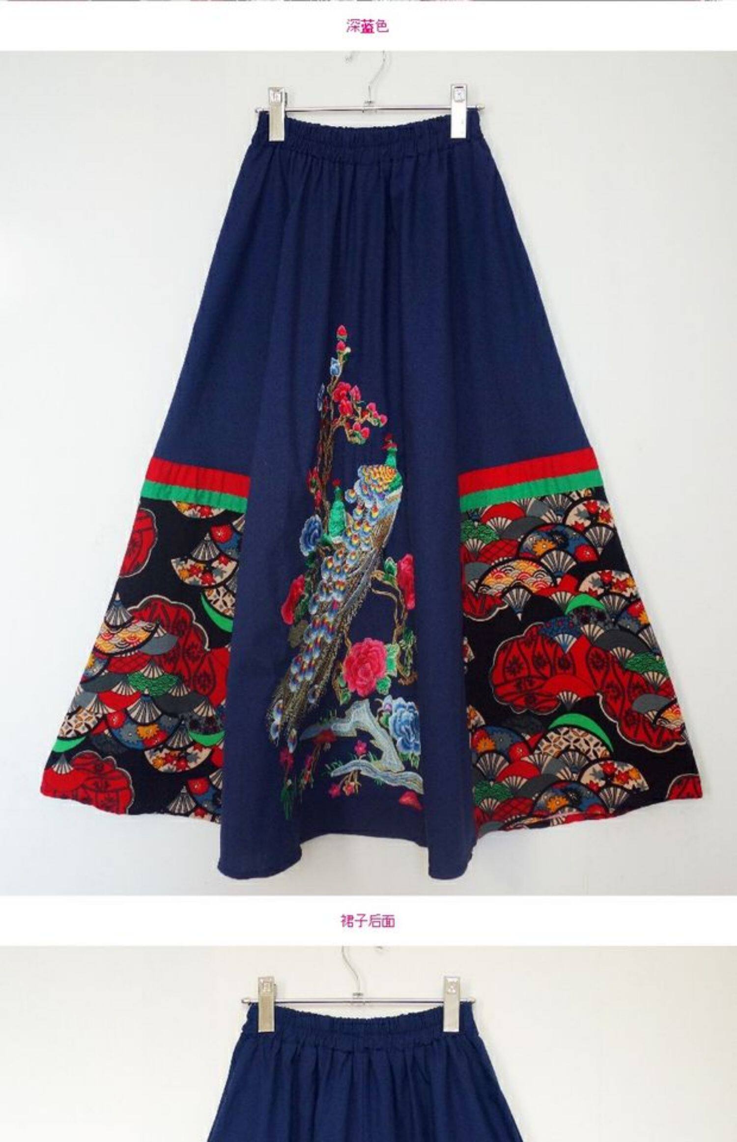 Юбка в складку, приталенная этническая длинная юбка, с вышивкой, эластичная талия, из хлопка и льна, этнический стиль