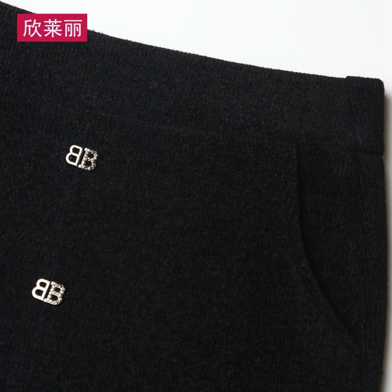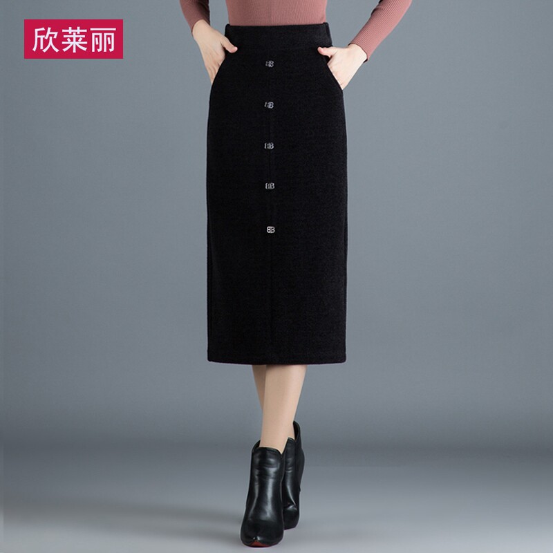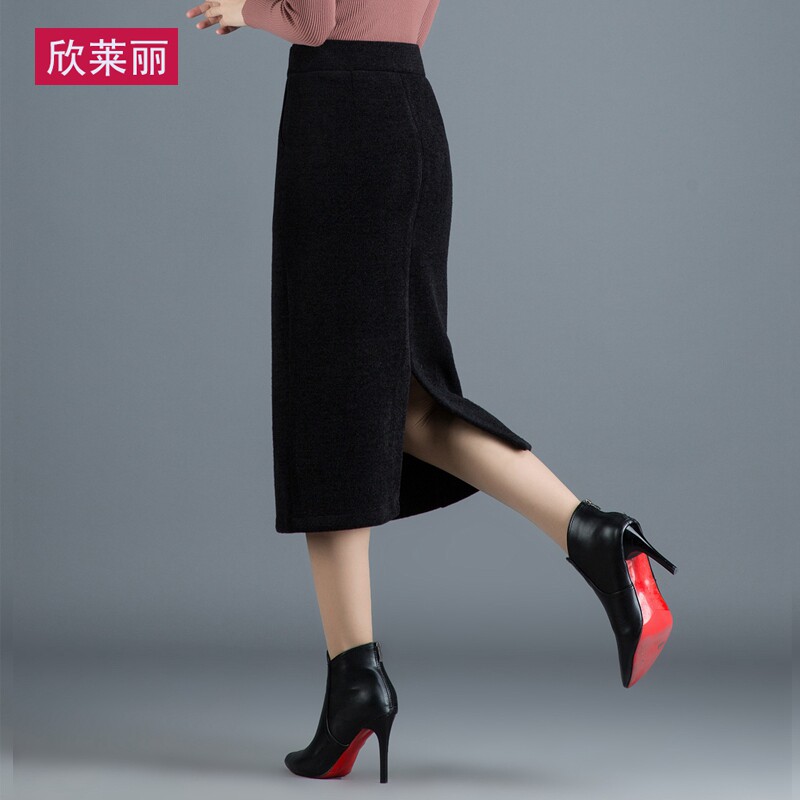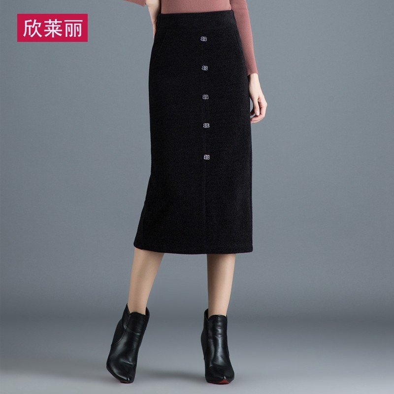 Бархатная длинная демисезонная приталенная зимняя юбка, свободный прямой крой, коллекция 2021, высокая талия, с акцентом на бедрах