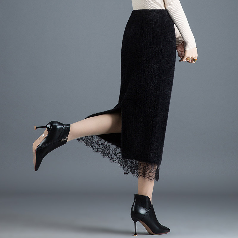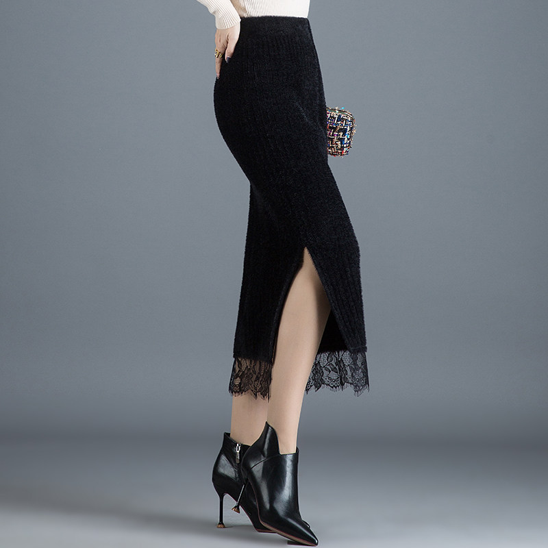 Шерстяная бархатная трикотажная демисезонная длинная длинная юбка, увеличенная толщина, высокая талия, с акцентом на бедрах
