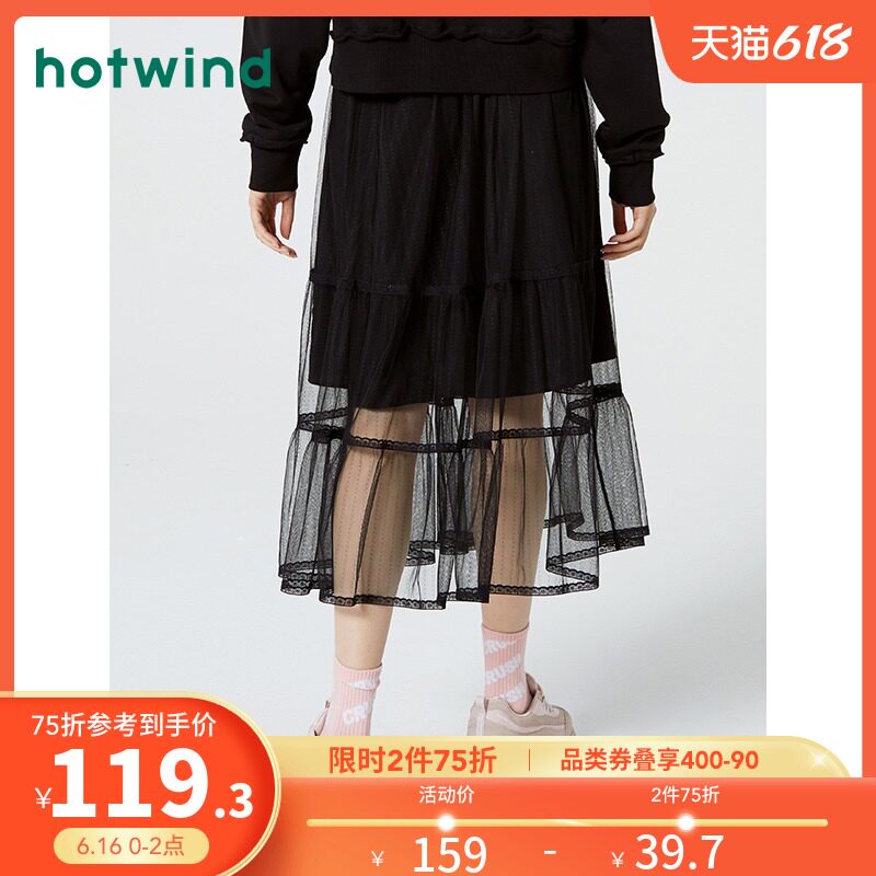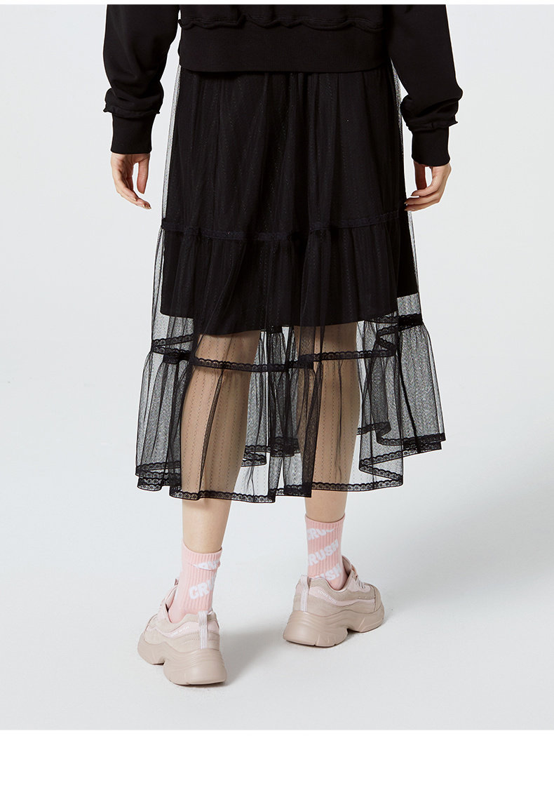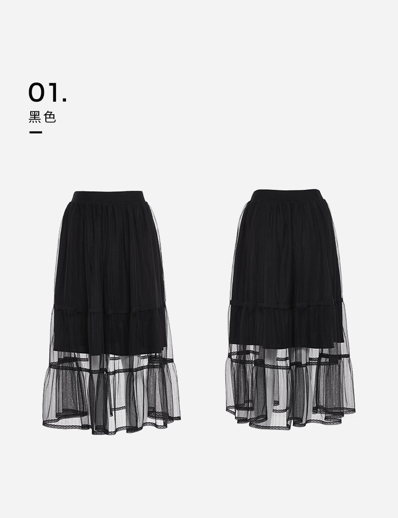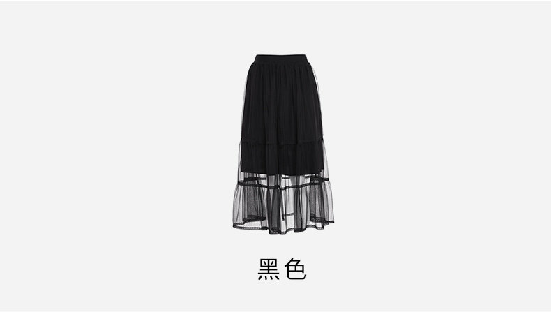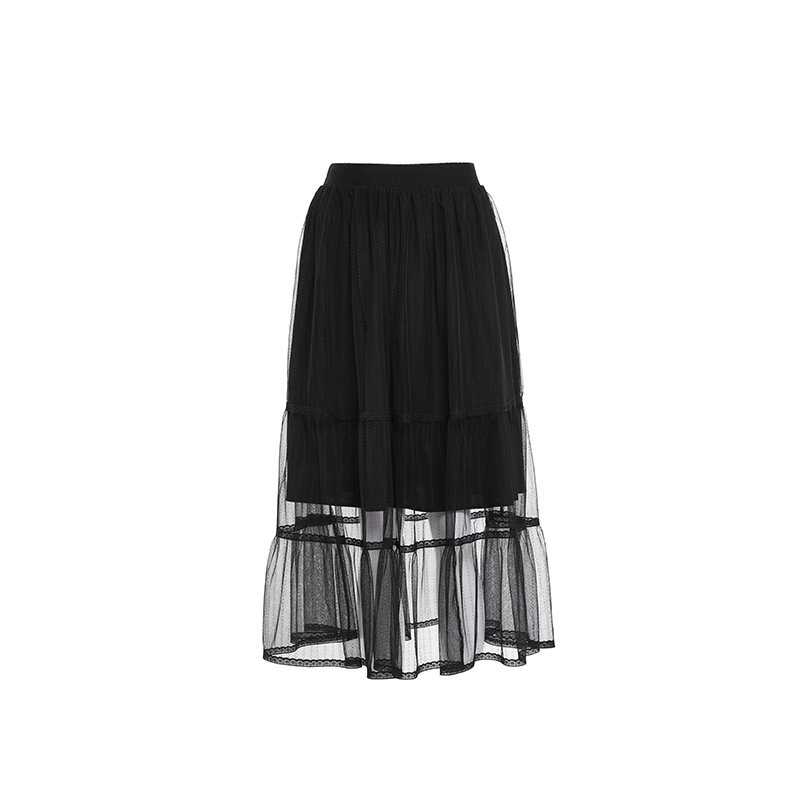 [Тот же стиль прилавка] Горячий ветер Новая маленькая свежая сети -юбка натуральная талия черная средняя юбка F14W0106