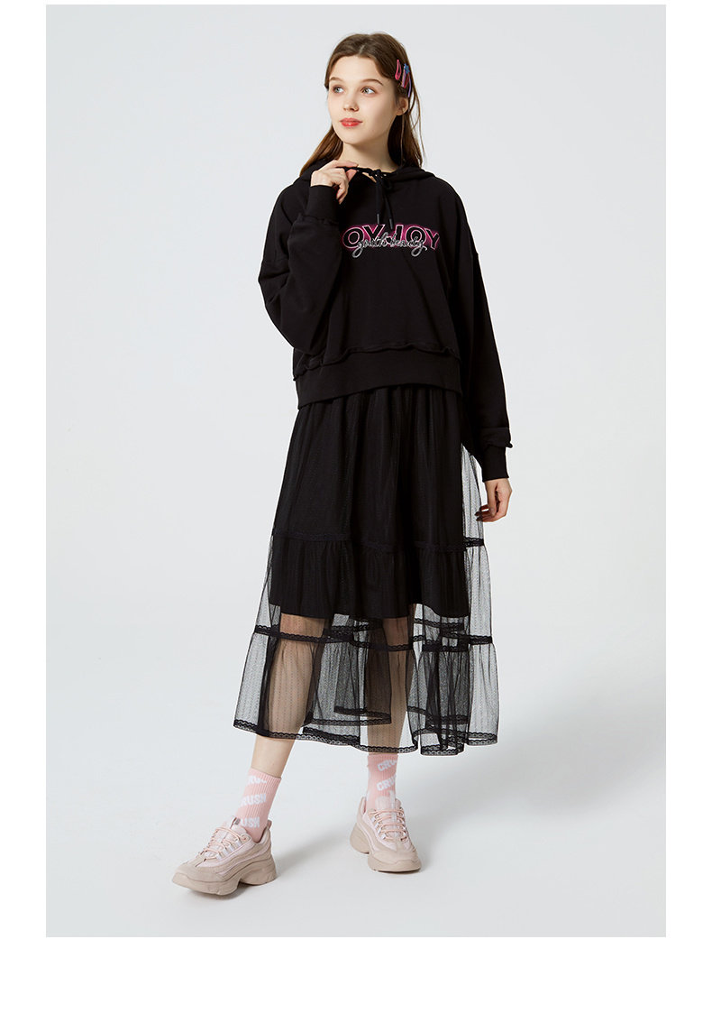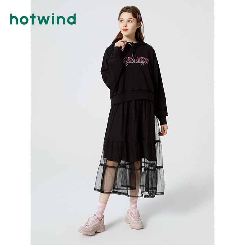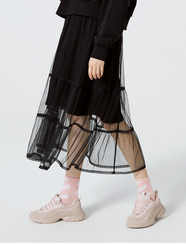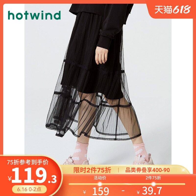 [Тот же стиль прилавка] Горячий ветер Новая маленькая свежая сети -юбка натуральная талия черная средняя юбка F14W0106