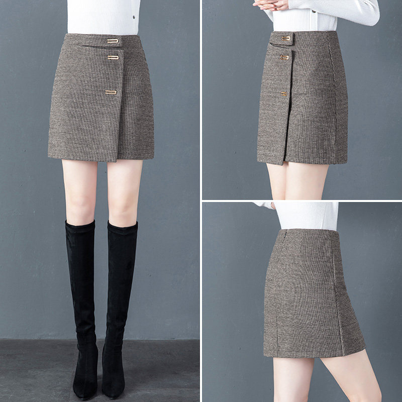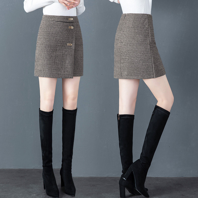 Шерстяная клетчатая демисезонная юбка, зимний шерстяной свитер, мини-юбка, коллекция 2023, с акцентом на бедрах, увеличенная толщина