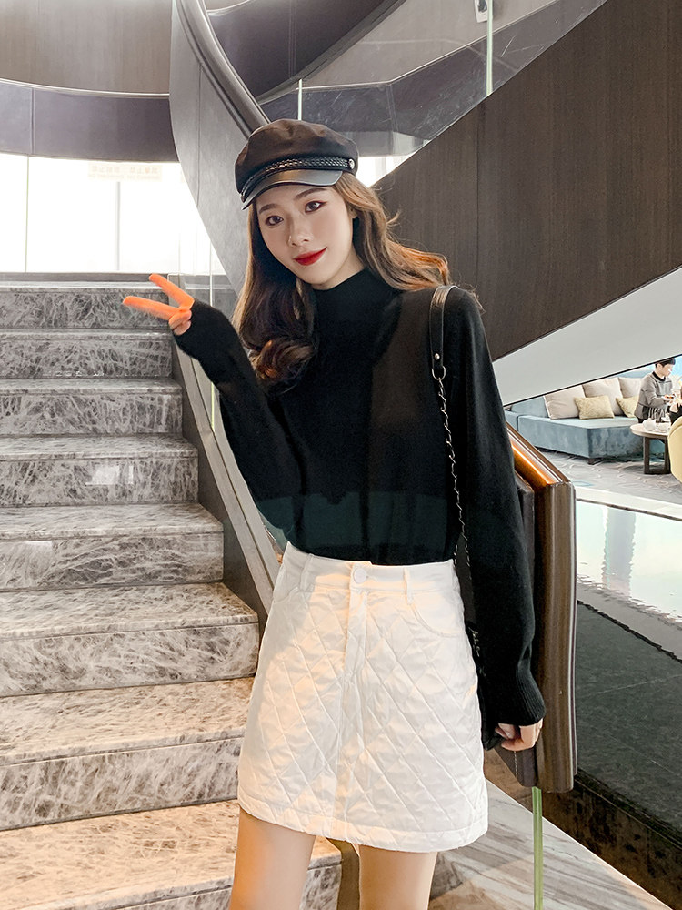 Удерживающая тепло белая юбка с пухом, 2019, увеличенная толщина, с акцентом на бедрах, А-силуэт