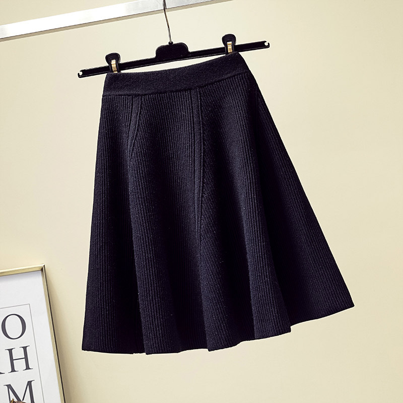 Трикотажная демисезонная черная юбка в складку, высокая талия, увеличенная толщина, большой размер
