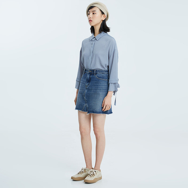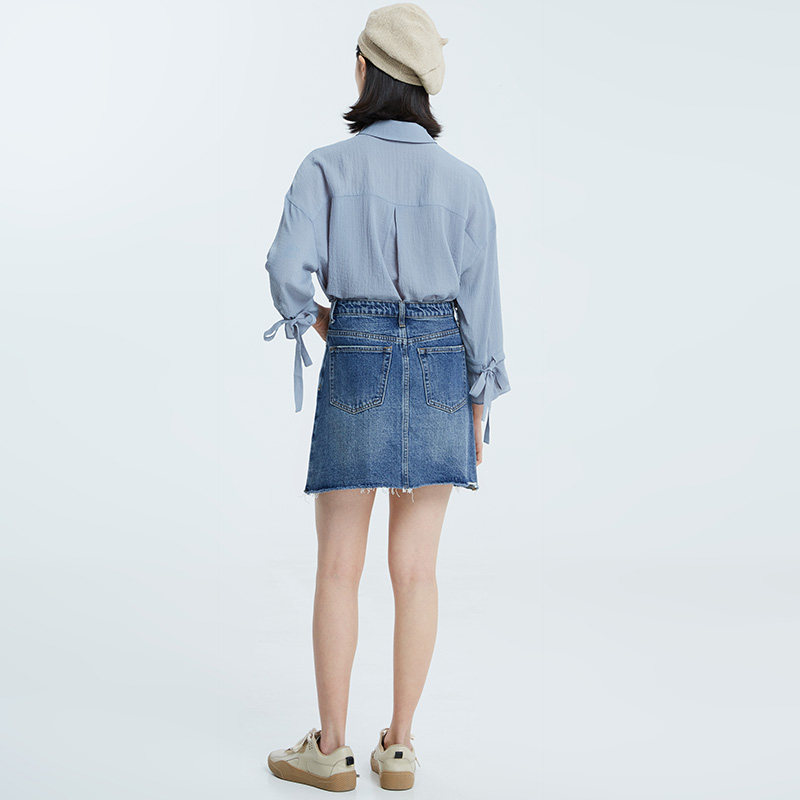 theMSLAN Летняя юбка, джинсовая мини-юбка, высокая талия, А-силуэт