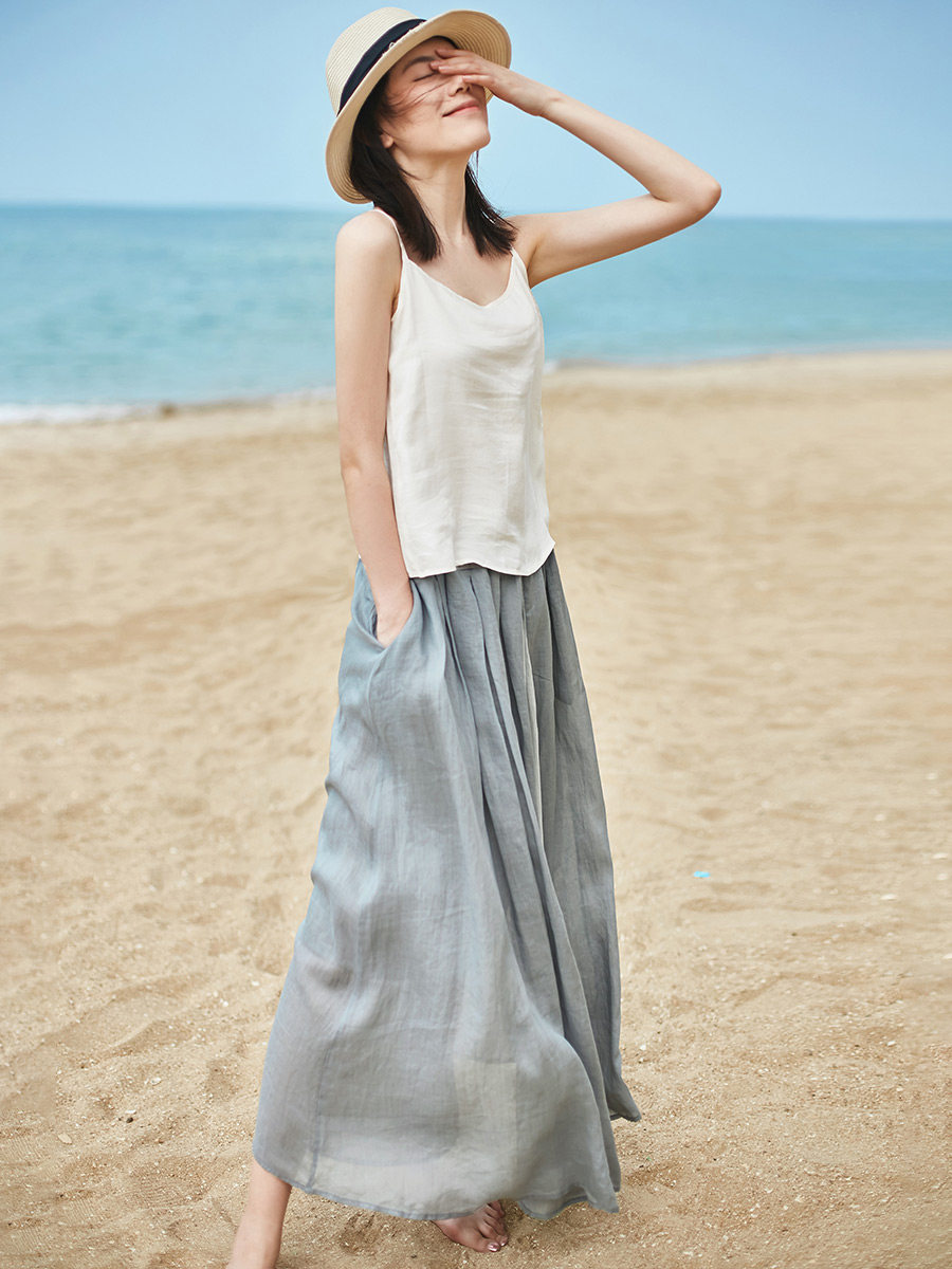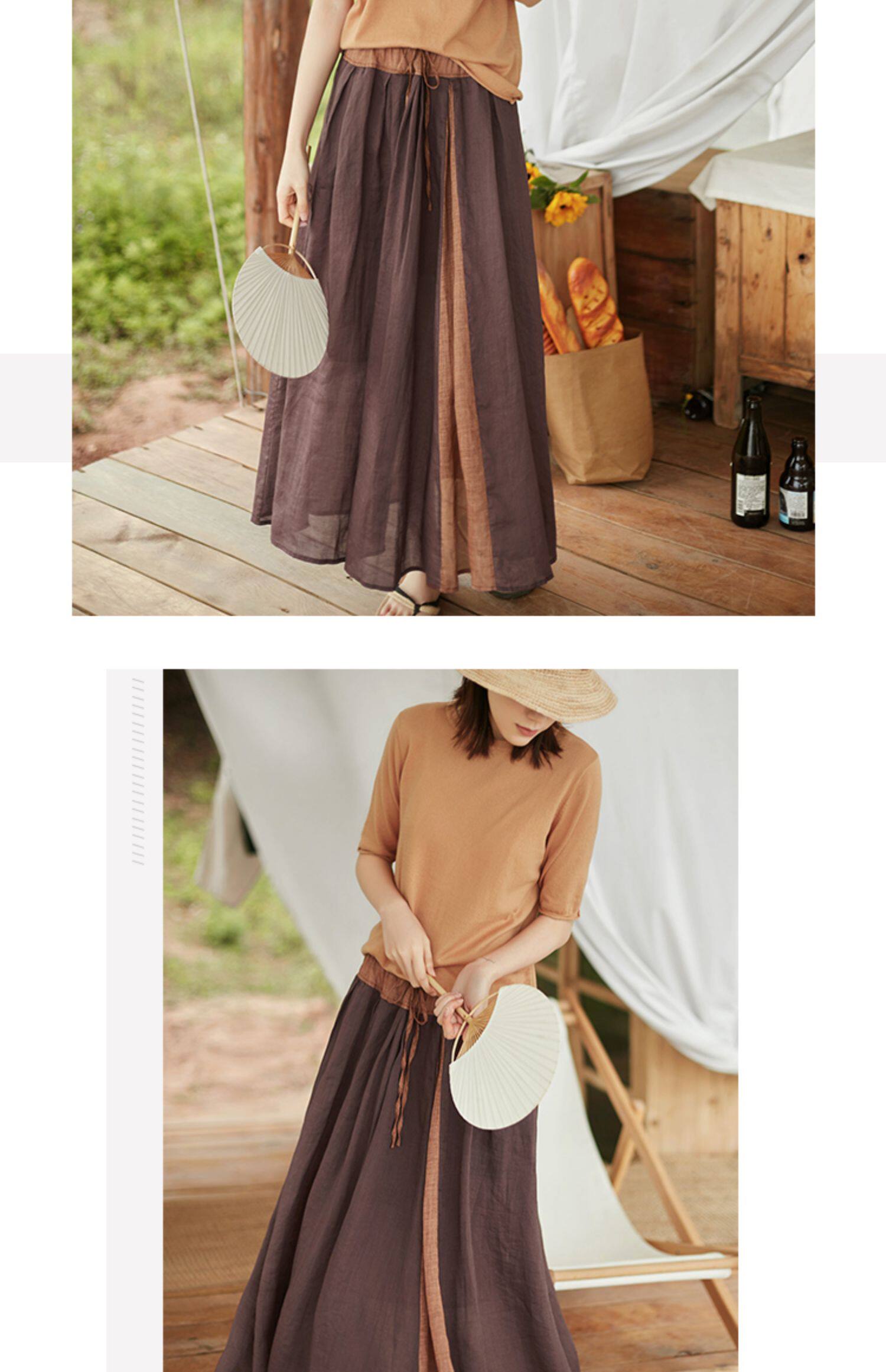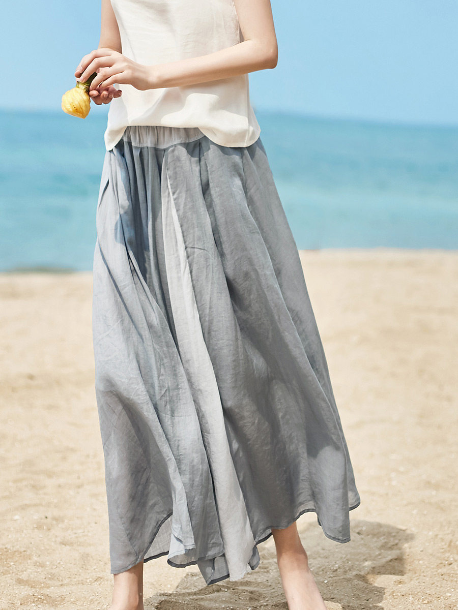 Юбка Yi Fei Space с большим количеством рами, новая элегантная и элегантная длинная юбка для отпуска, весна и лето, легкая газовая юбка средней длины