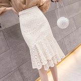 Кружевная юбка, приталенная летняя одежда, высокая талия, 2021 года, средней длины, А-силуэт, с акцентом на бедрах