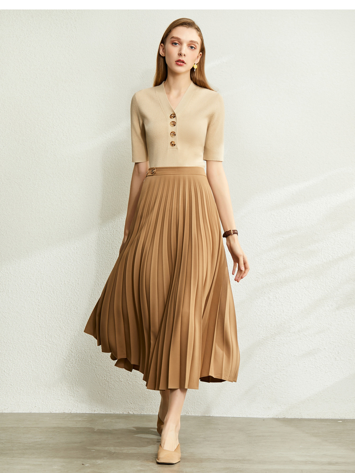 Amii Осенняя юбка в складку, длинная длинная юбка, французский стиль, высокая талия, А-силуэт