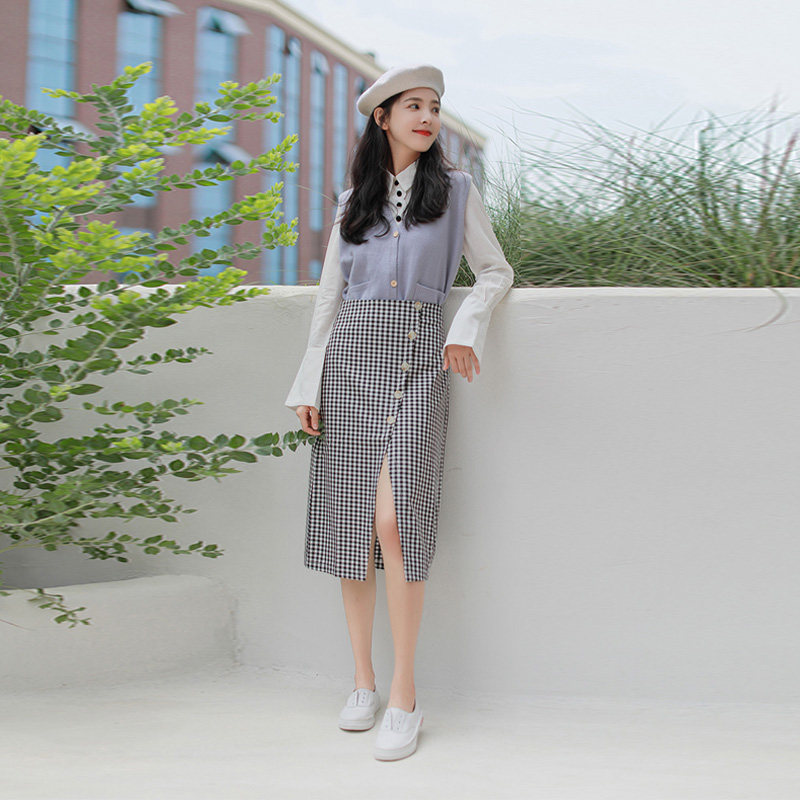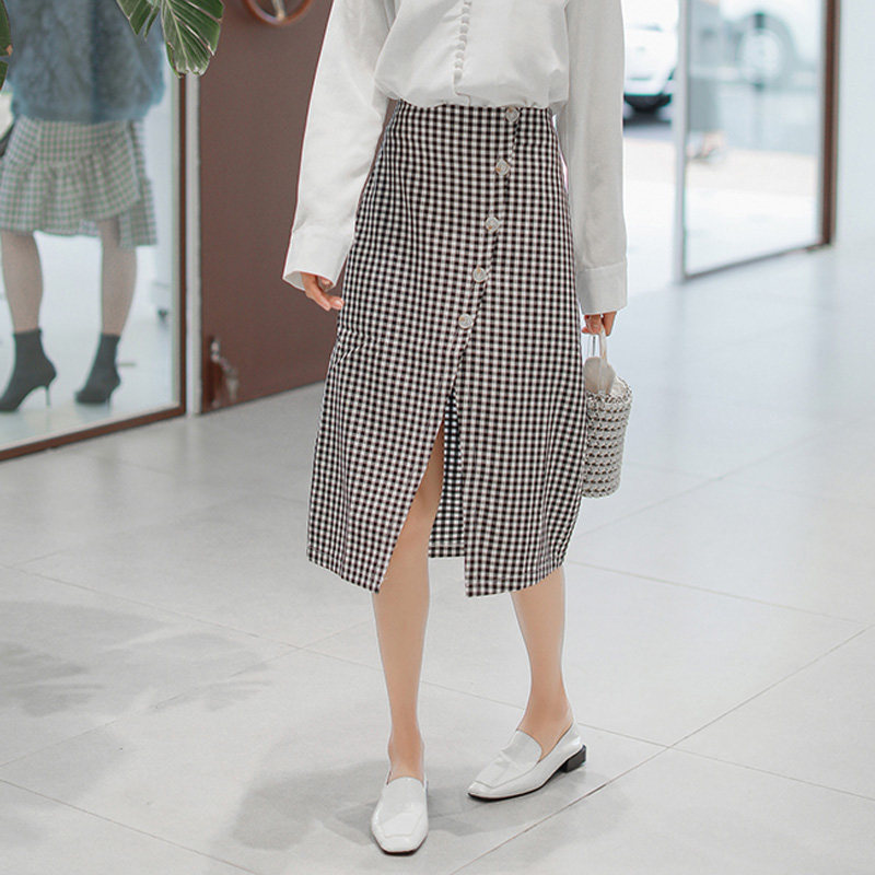 Ретро клетчатая длинная юбка, высокая талия, А-силуэт