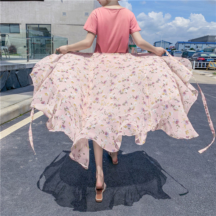 Юбка, шифоновое пляжное платье, коллекция 2022, городской стиль, цветочный принт, защита от солнца