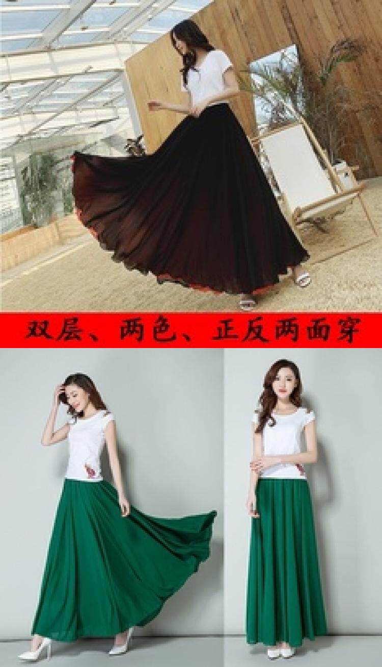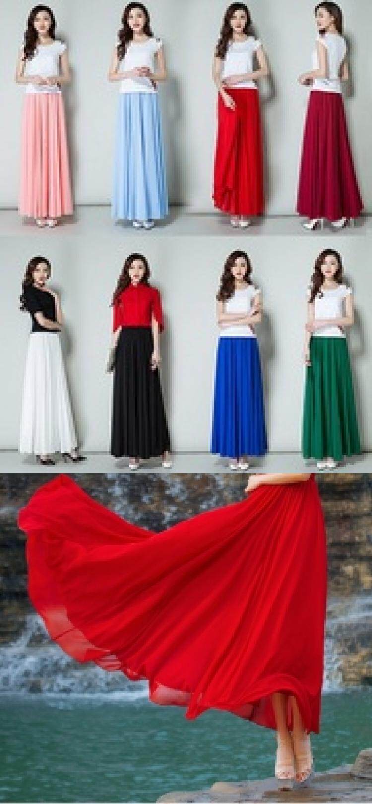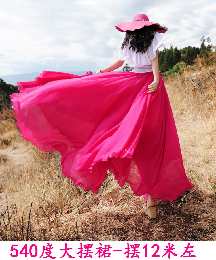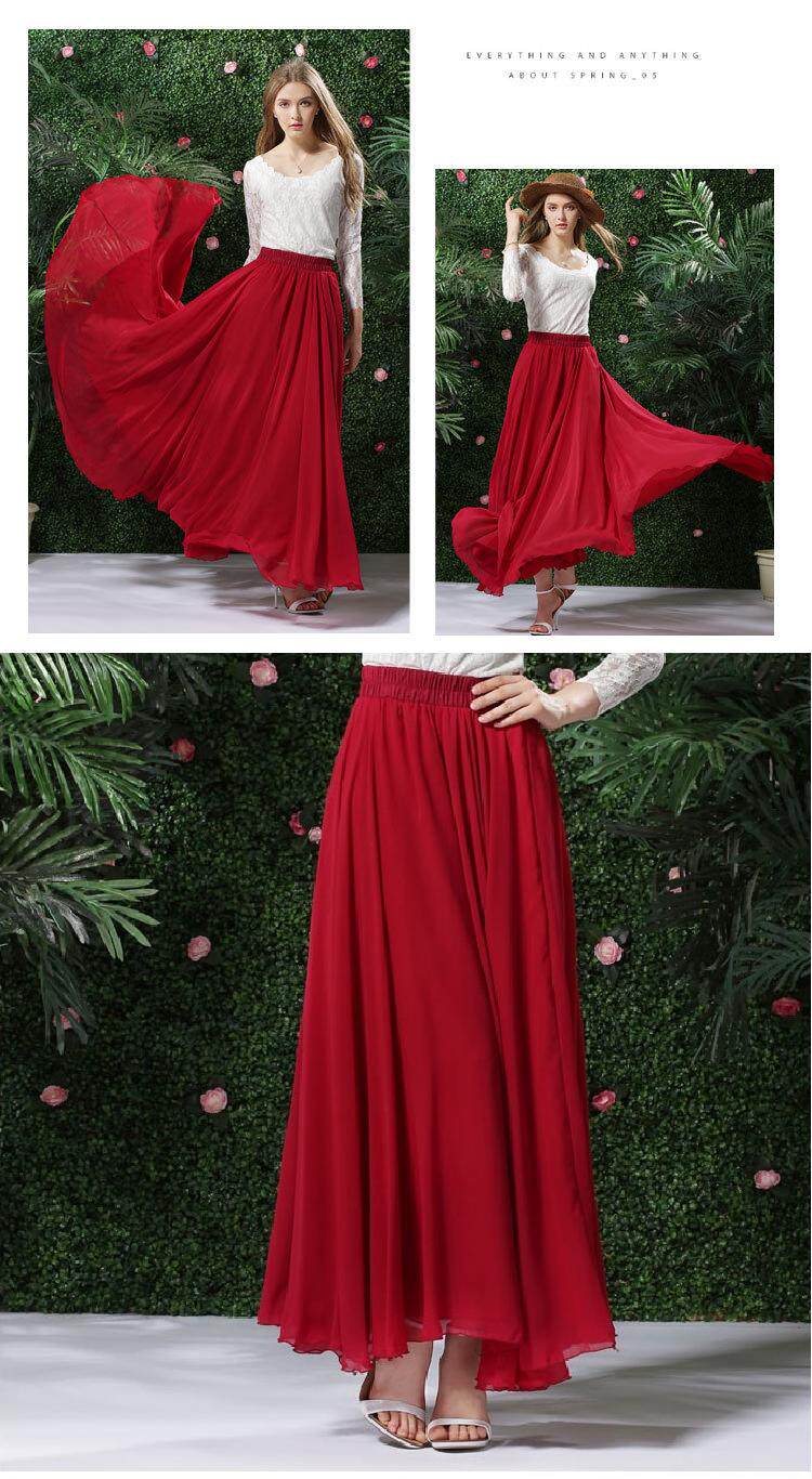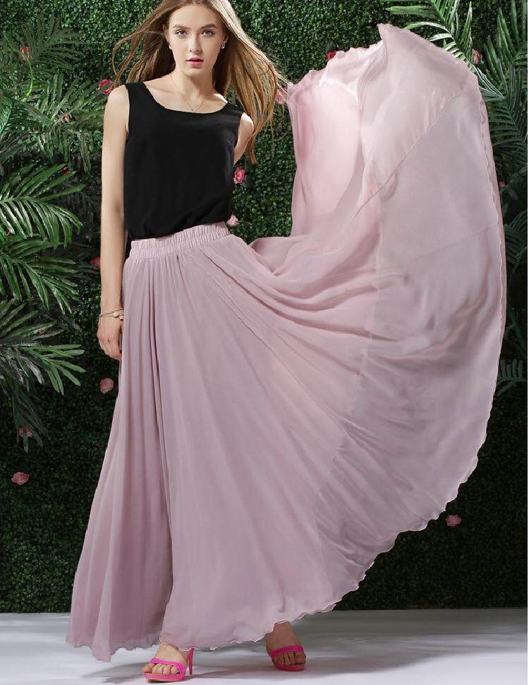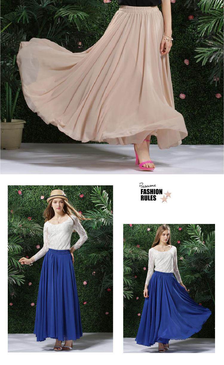 Длинная весенняя осенняя шифоновая цветная пляжная длинная юбка, по фигуре, А-силуэт