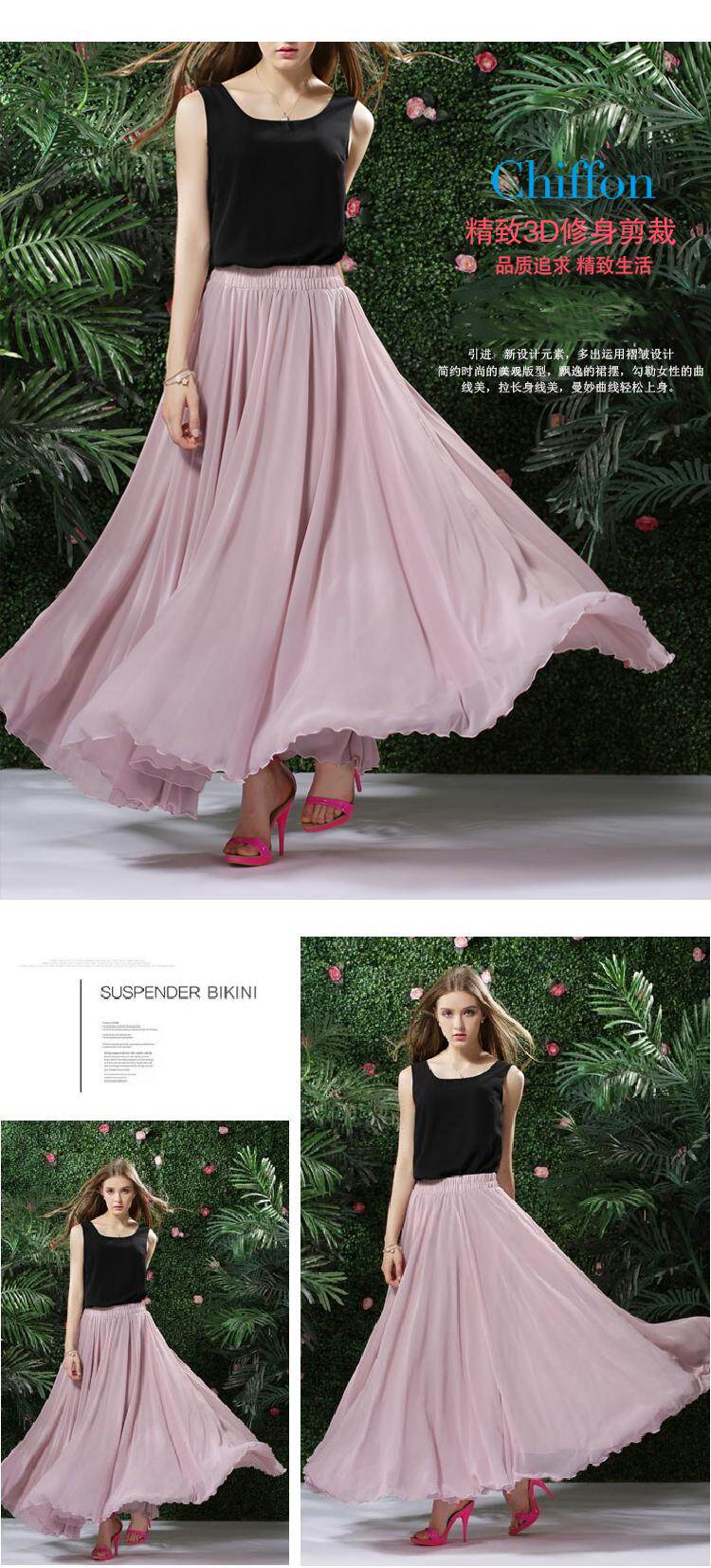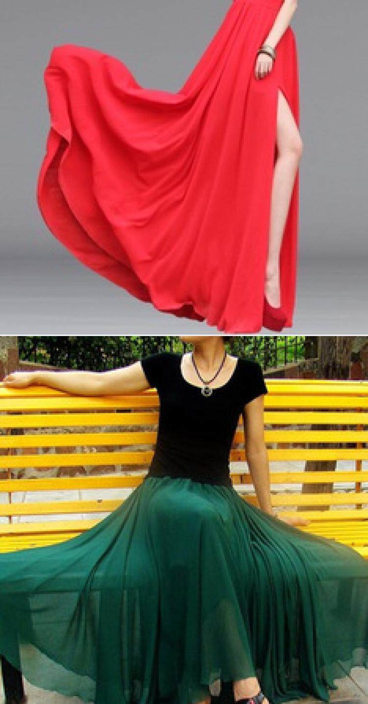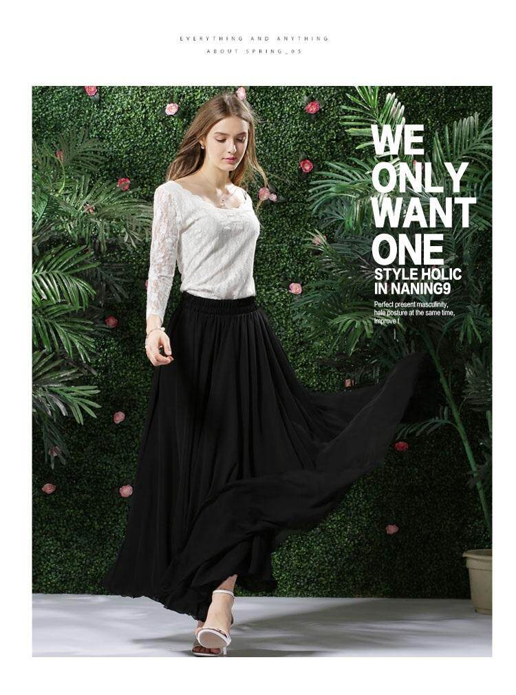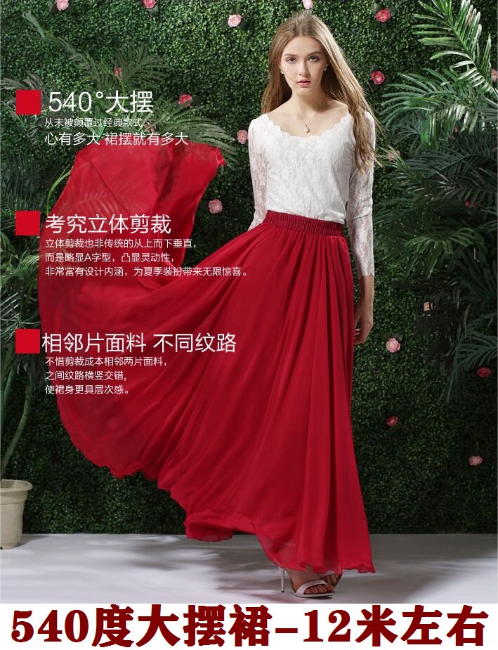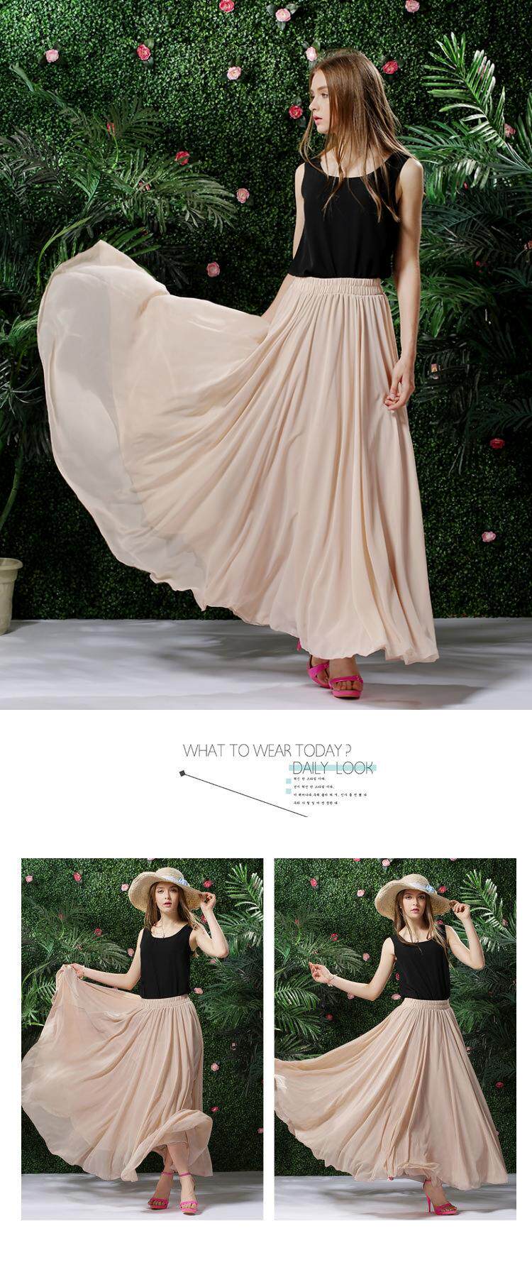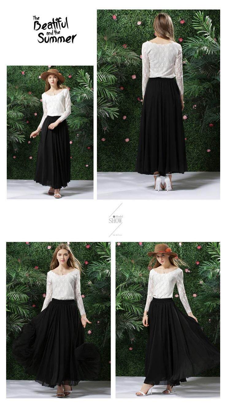 Длинная весенняя осенняя шифоновая цветная пляжная длинная юбка, по фигуре, А-силуэт