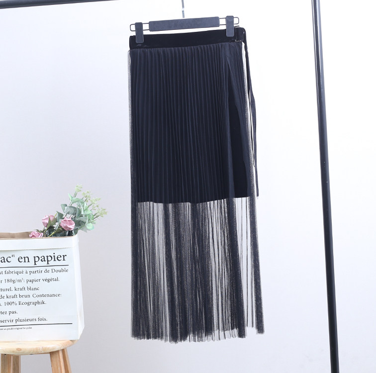 Весенняя бархатная черная цветная приталенная длинная юбка