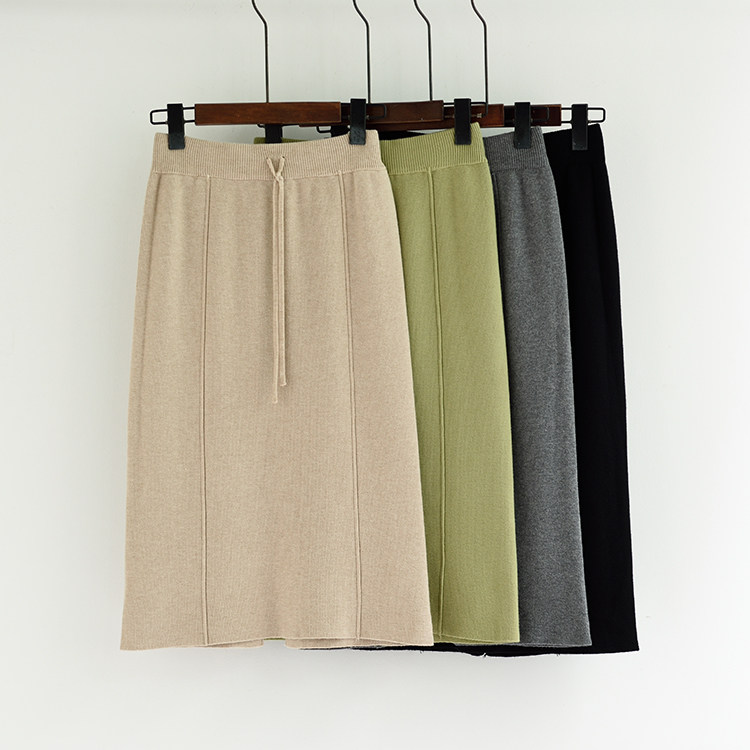 Осенняя цветная приталенная трикотажная длинная юбка, городской стиль, высокая талия