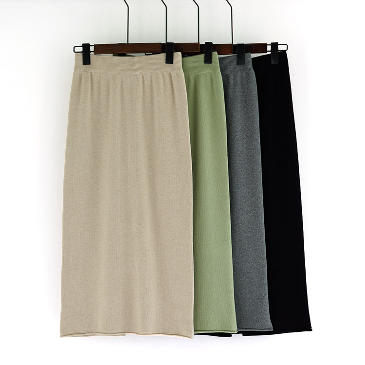 Осенняя однотонная приталенная трикотажная длинная юбка, городской стиль, высокая талия