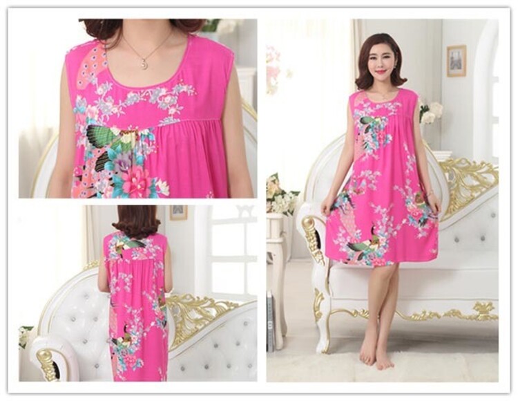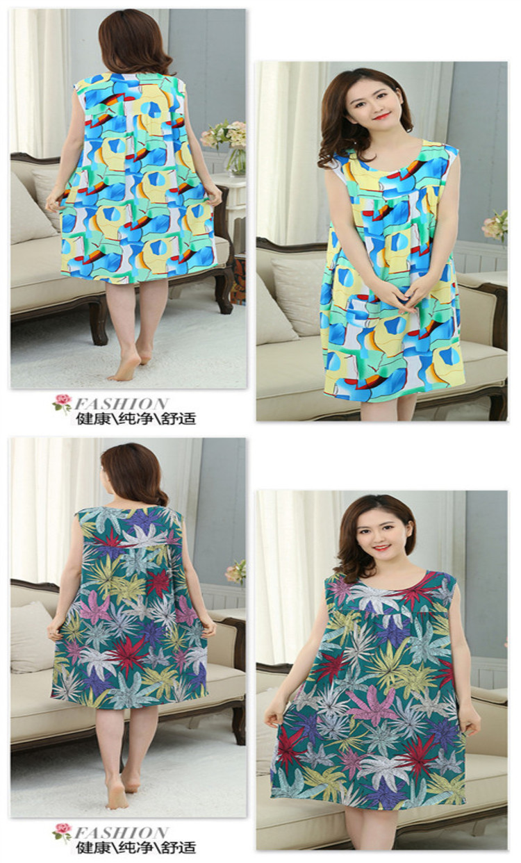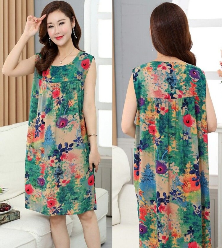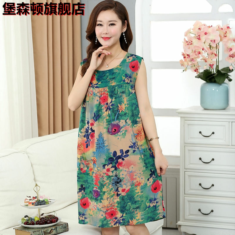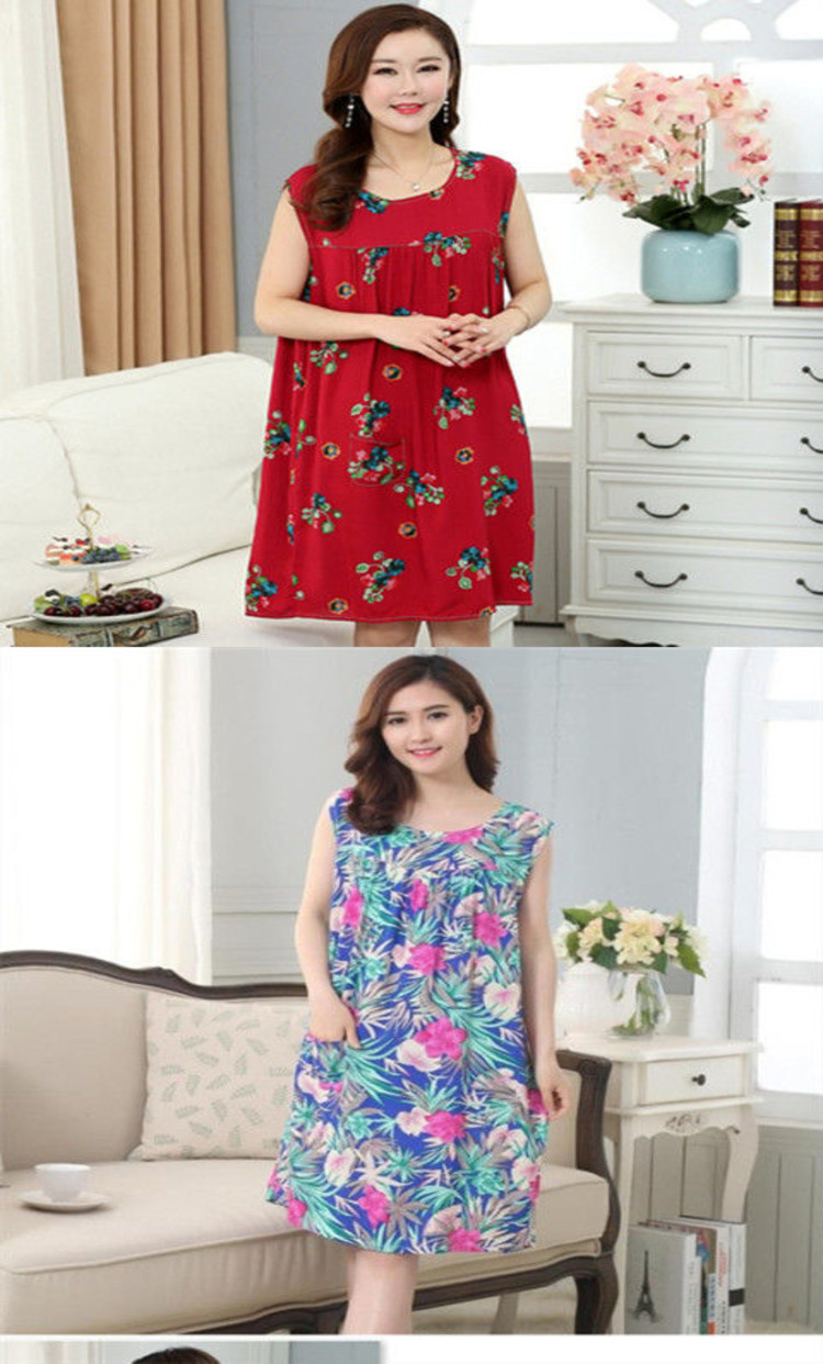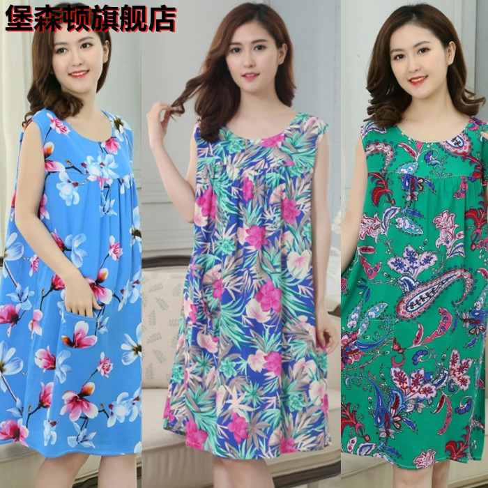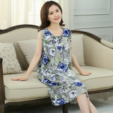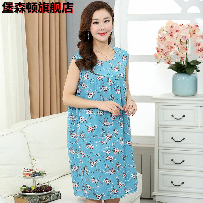 Пижама, юбка без рукавов, длинное платье, в корейском стиле, большой размер, для среднего возраста, средней длины
