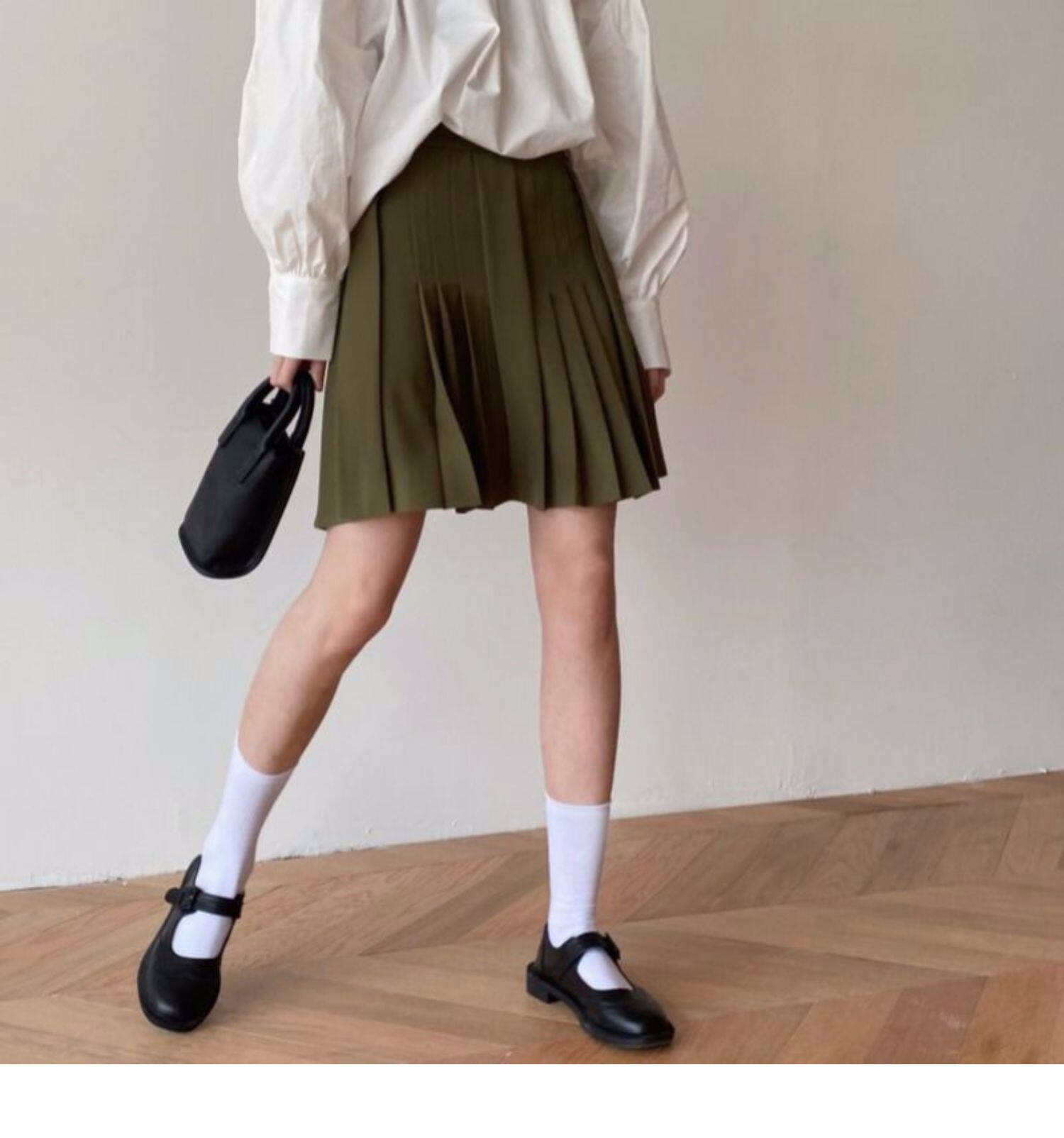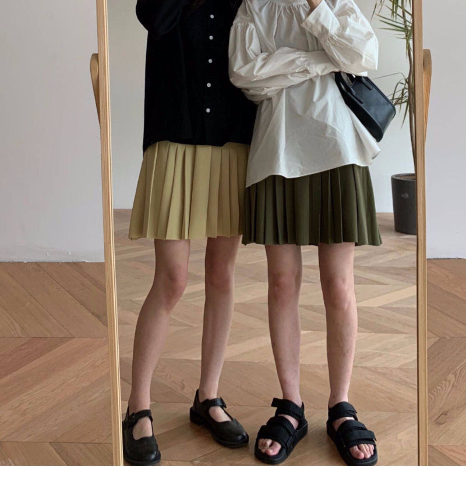 Ретро зеленая мини-юбка, безопасные штаны, студенческая юбка в складку, А-силуэт