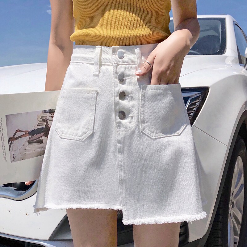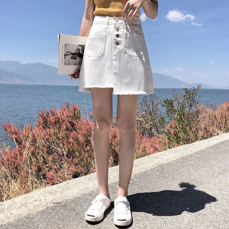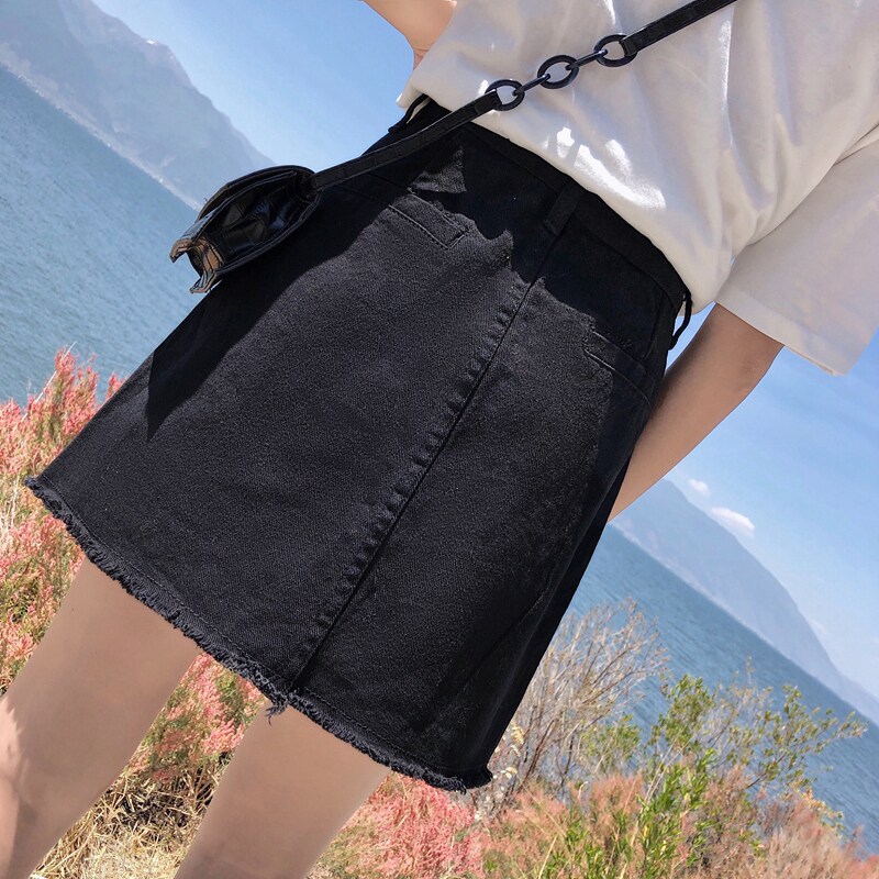 Летняя джинсовая юбка, большой размер, высокая талия, с акцентом на бедрах