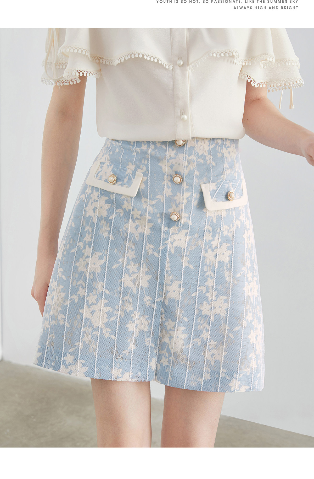 Летняя юбка, высокая талия, А-силуэт, яркий броский стиль, цветочный принт