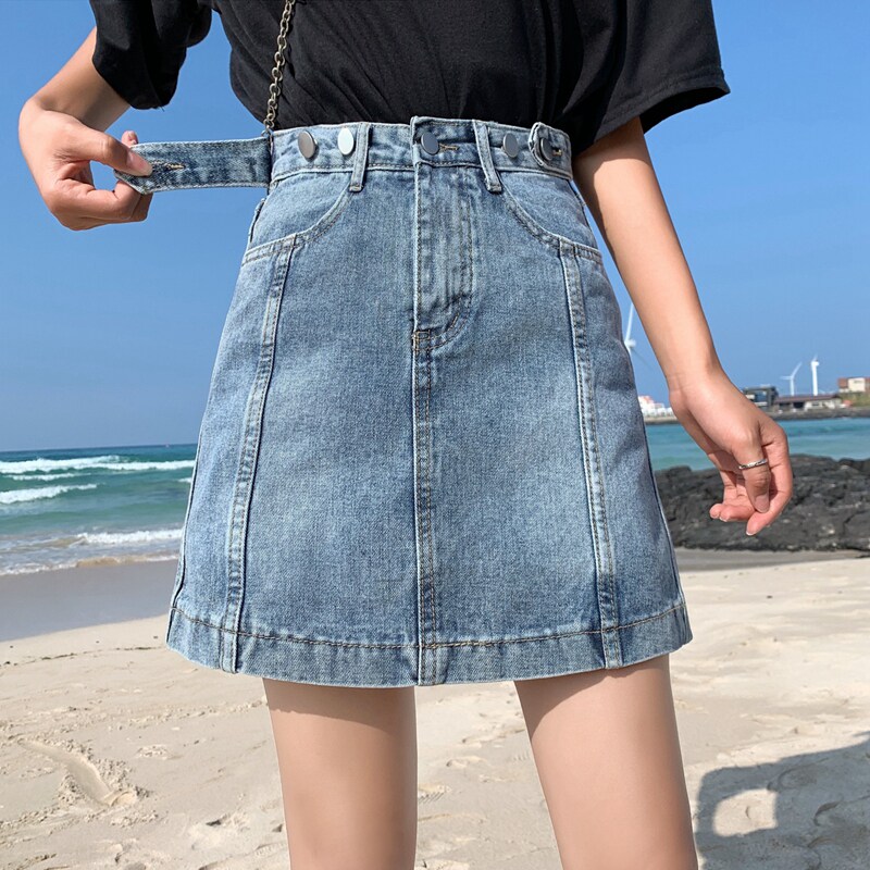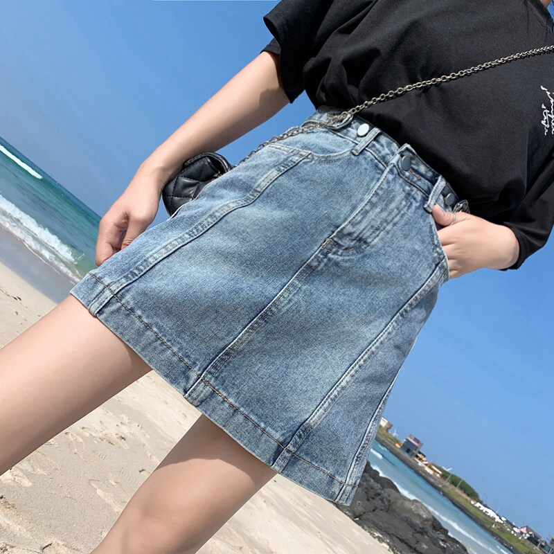 Весенняя летняя джинсовая юбка, мини-юбка, 2021 года, высокая талия, А-силуэт, большой размер, с акцентом на бедрах