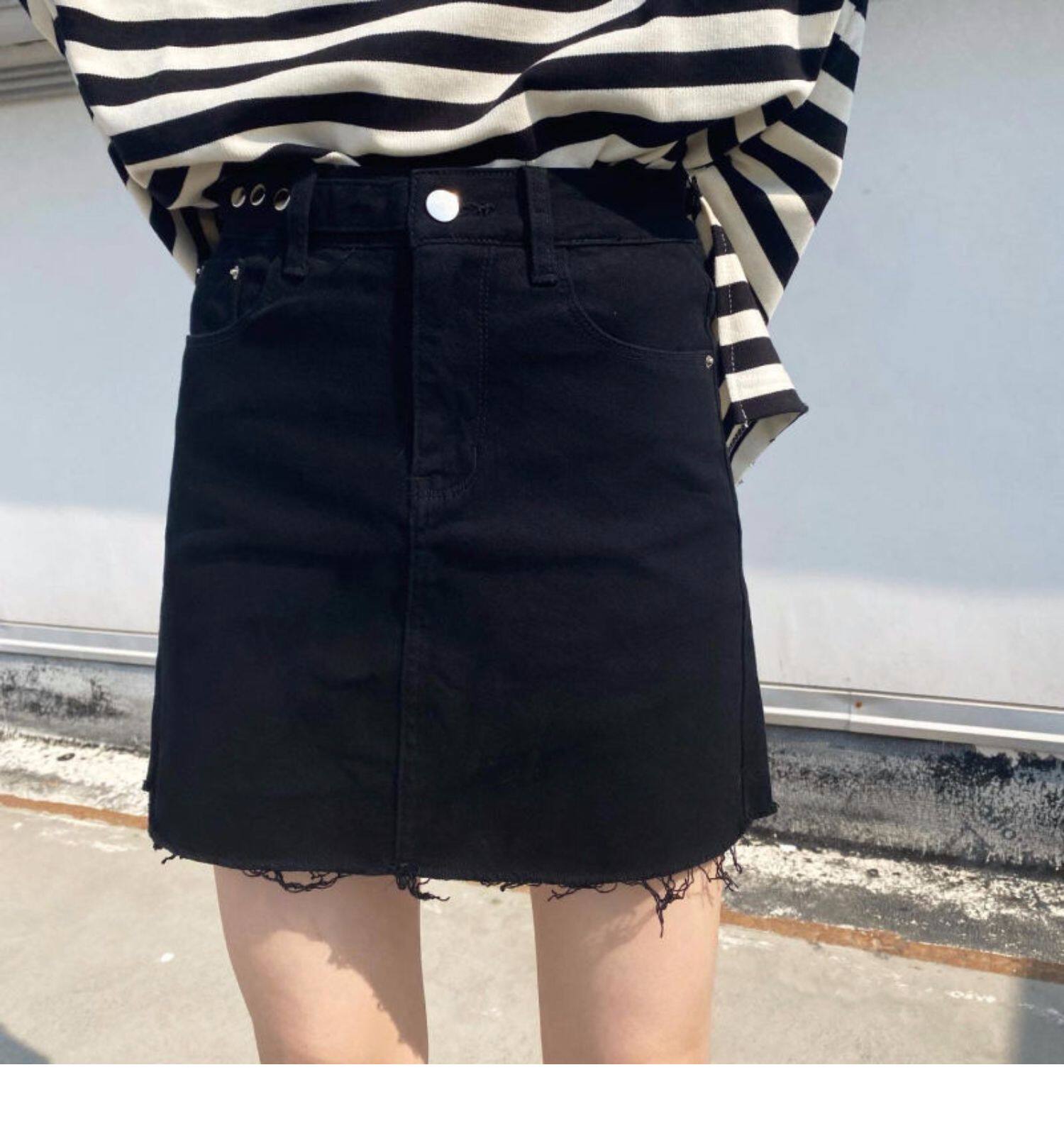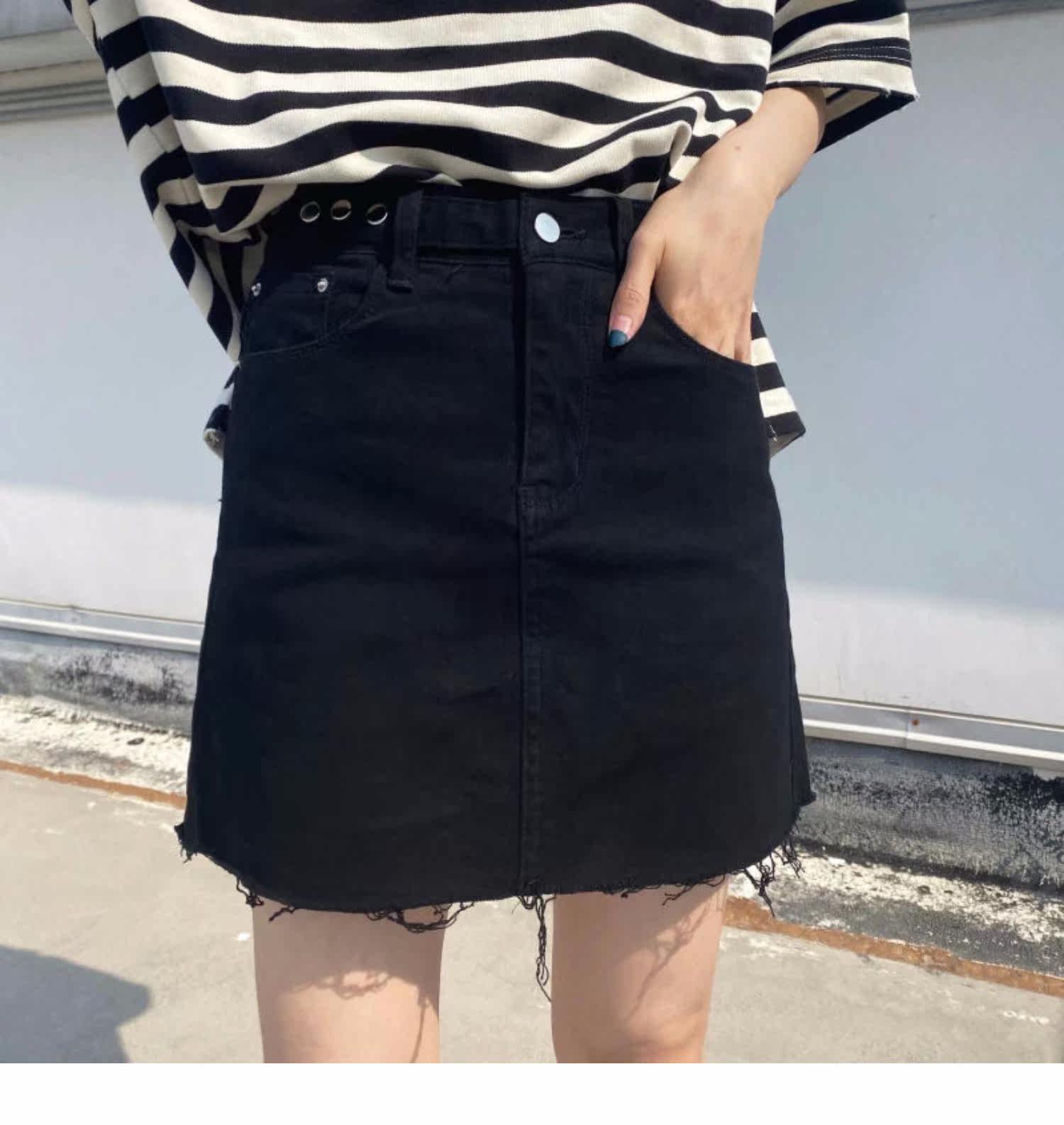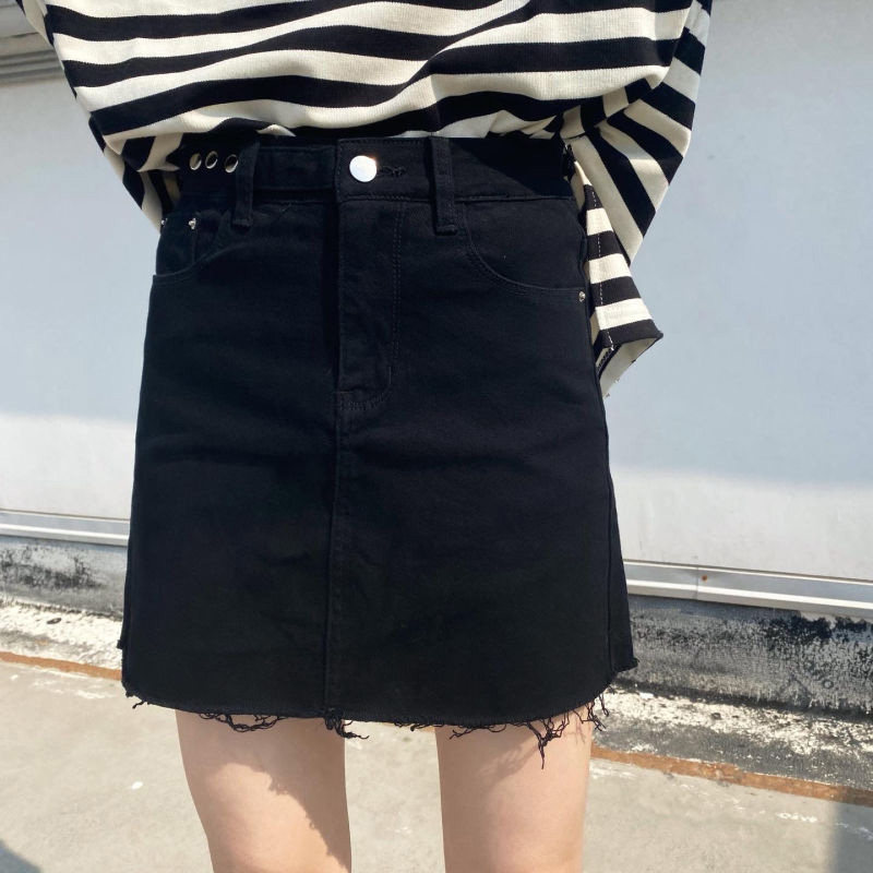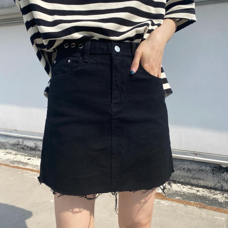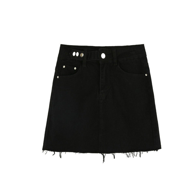 Брендовая черная джинсовая юбка, приталенная универсальная дизайнерская мини-юбка, тренд сезона, с акцентом на бедрах, А-силуэт