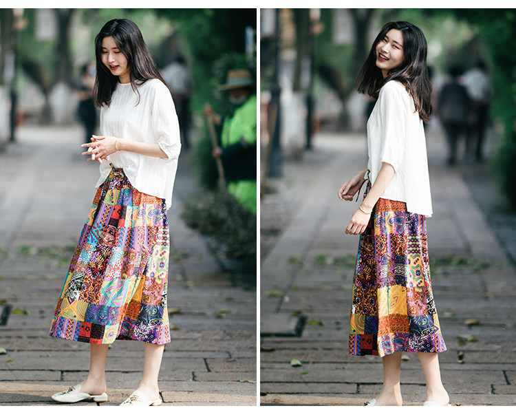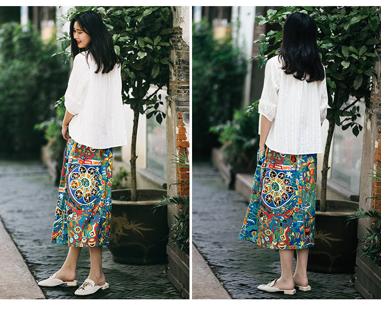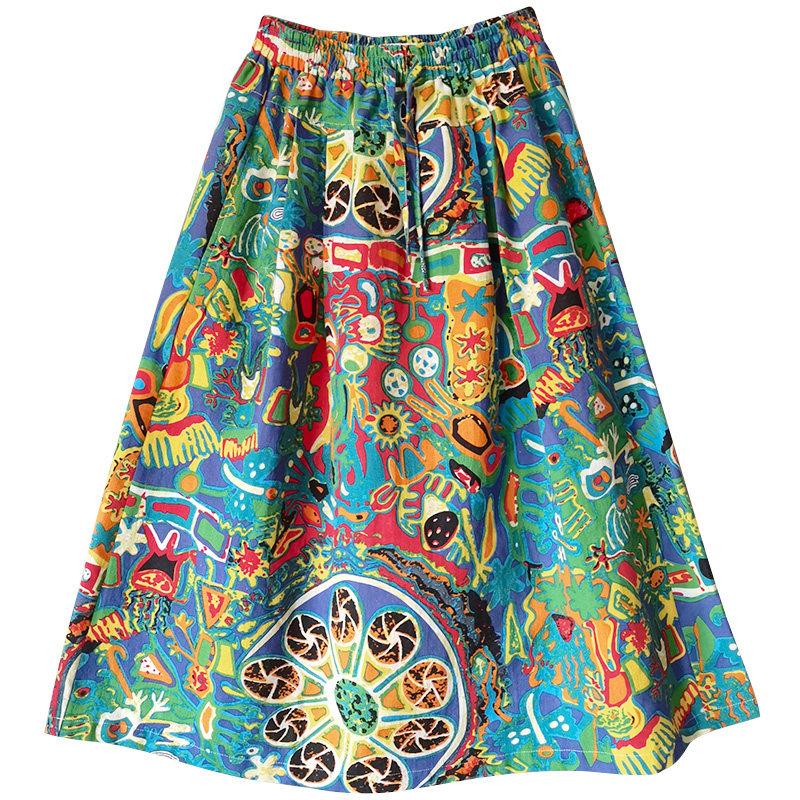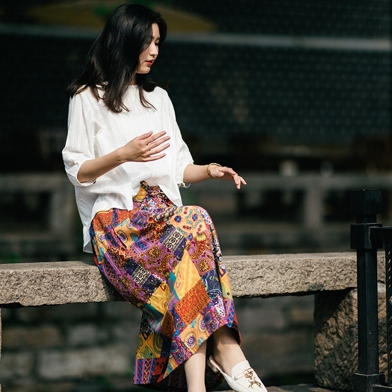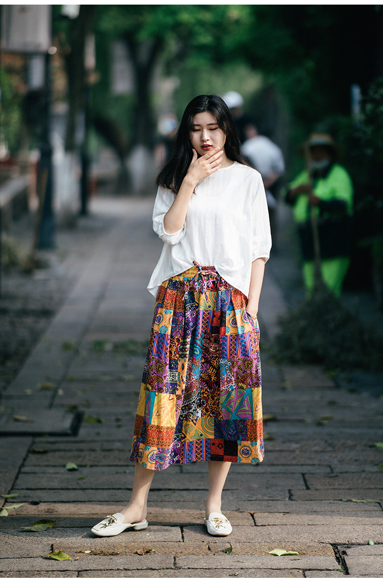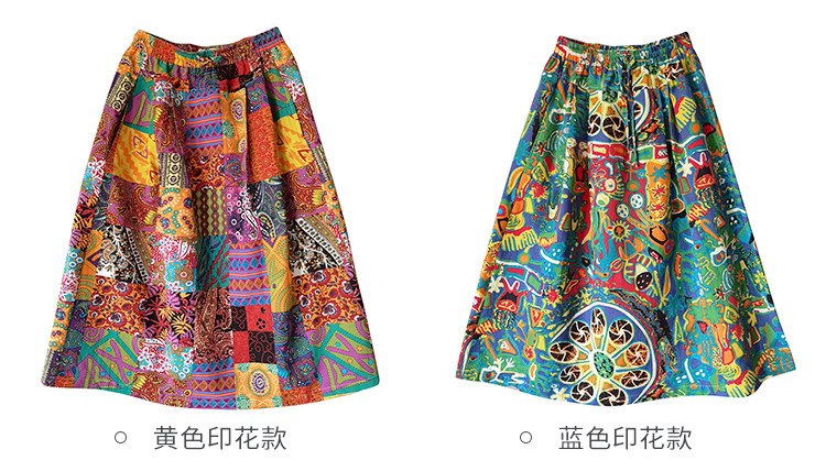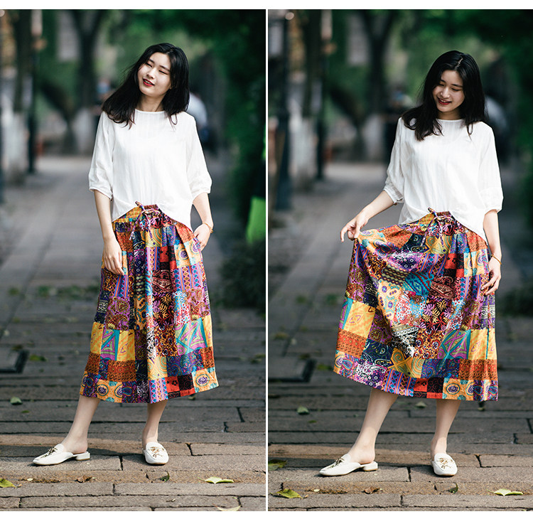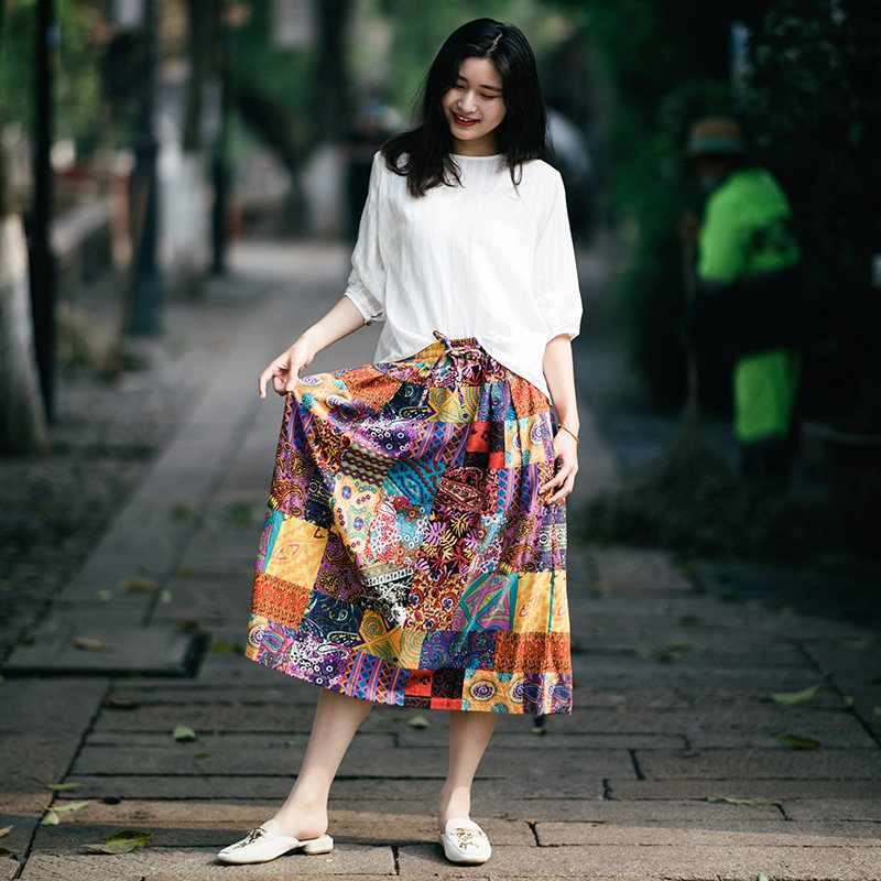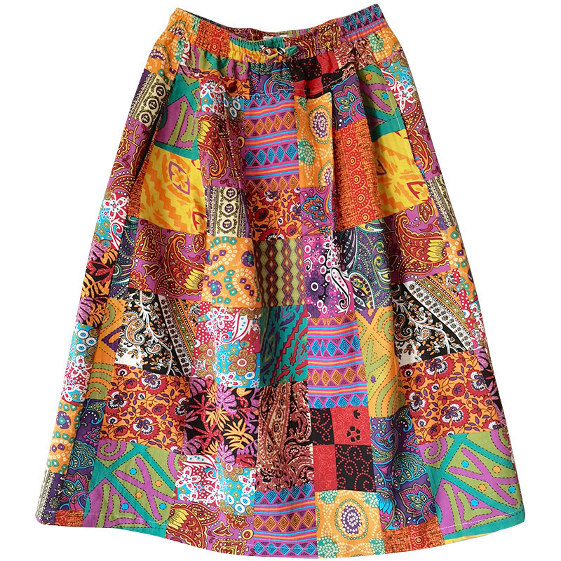 Осенняя этническая юбка, из хлопка и льна, этнический стиль
