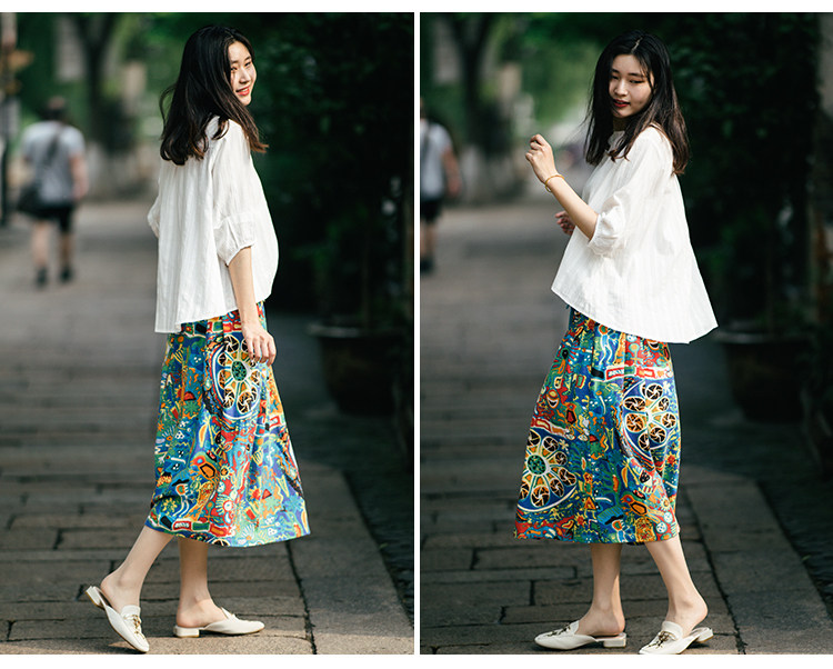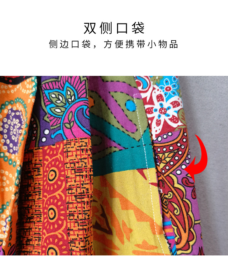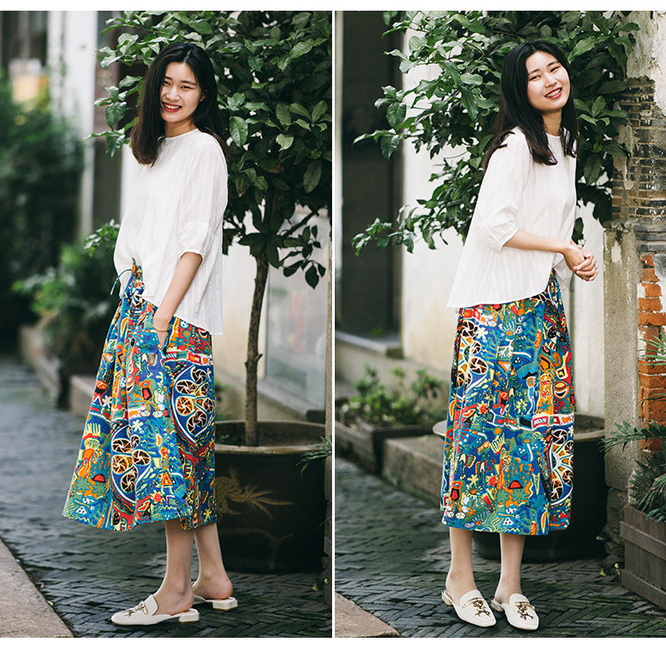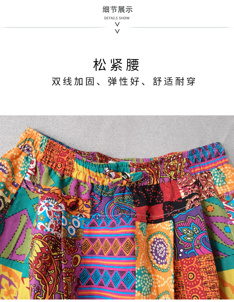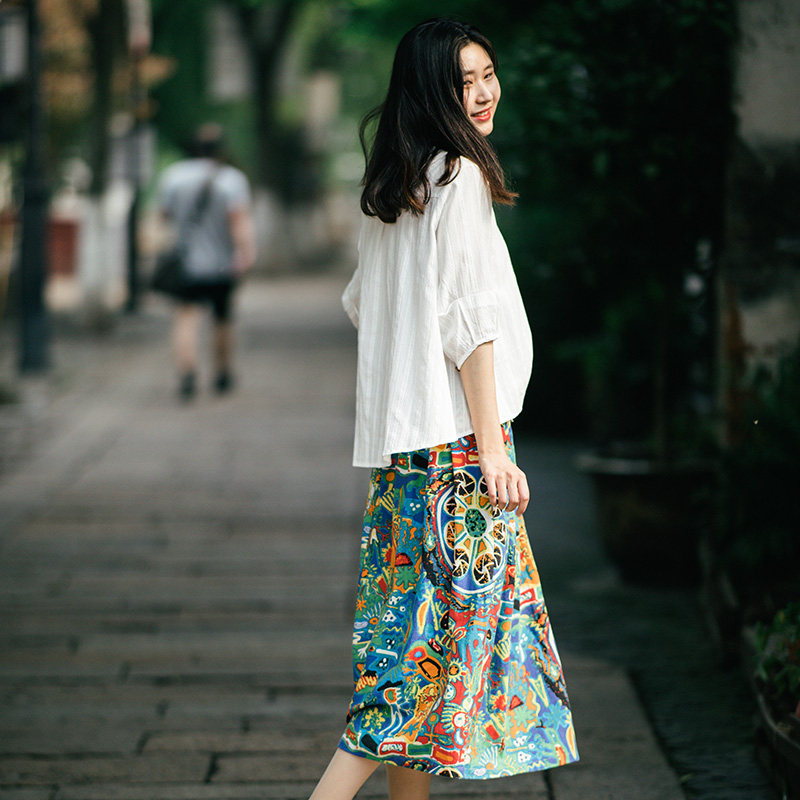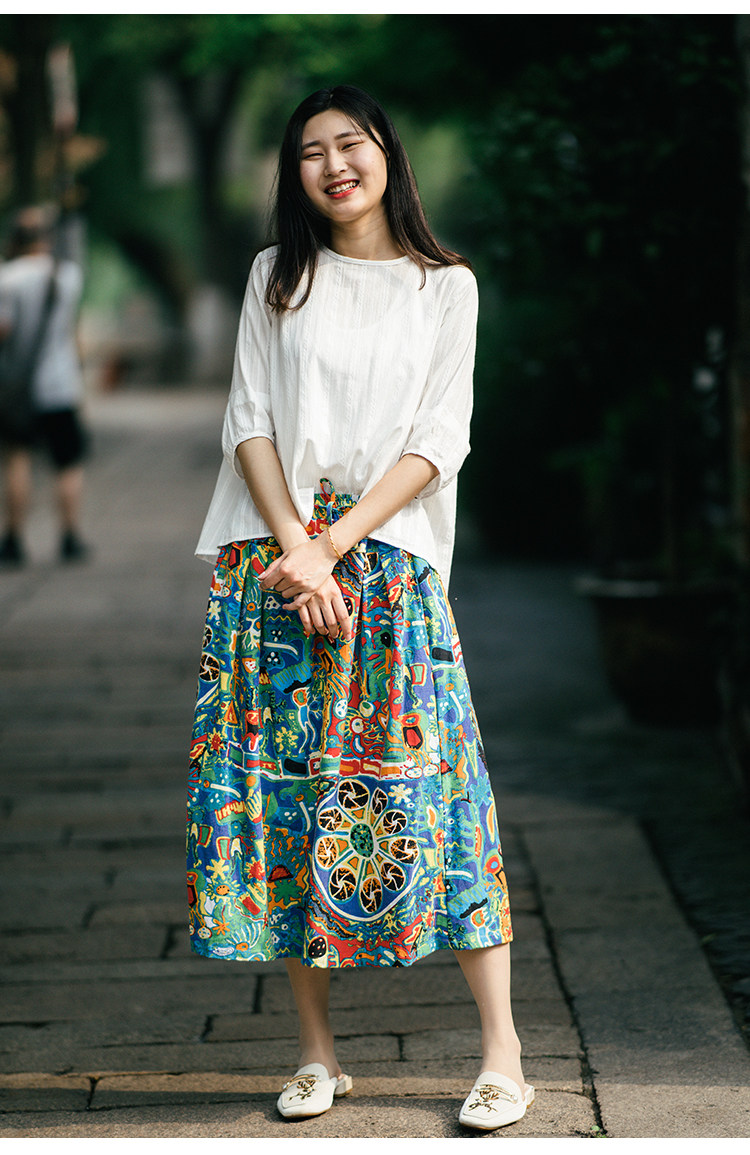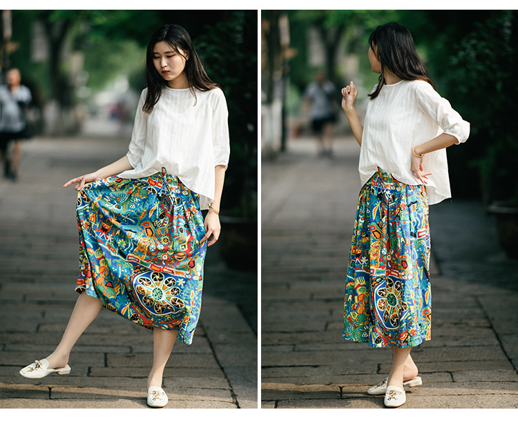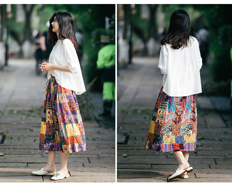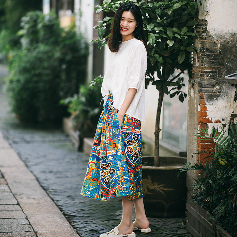 Осенняя этническая юбка, из хлопка и льна, этнический стиль