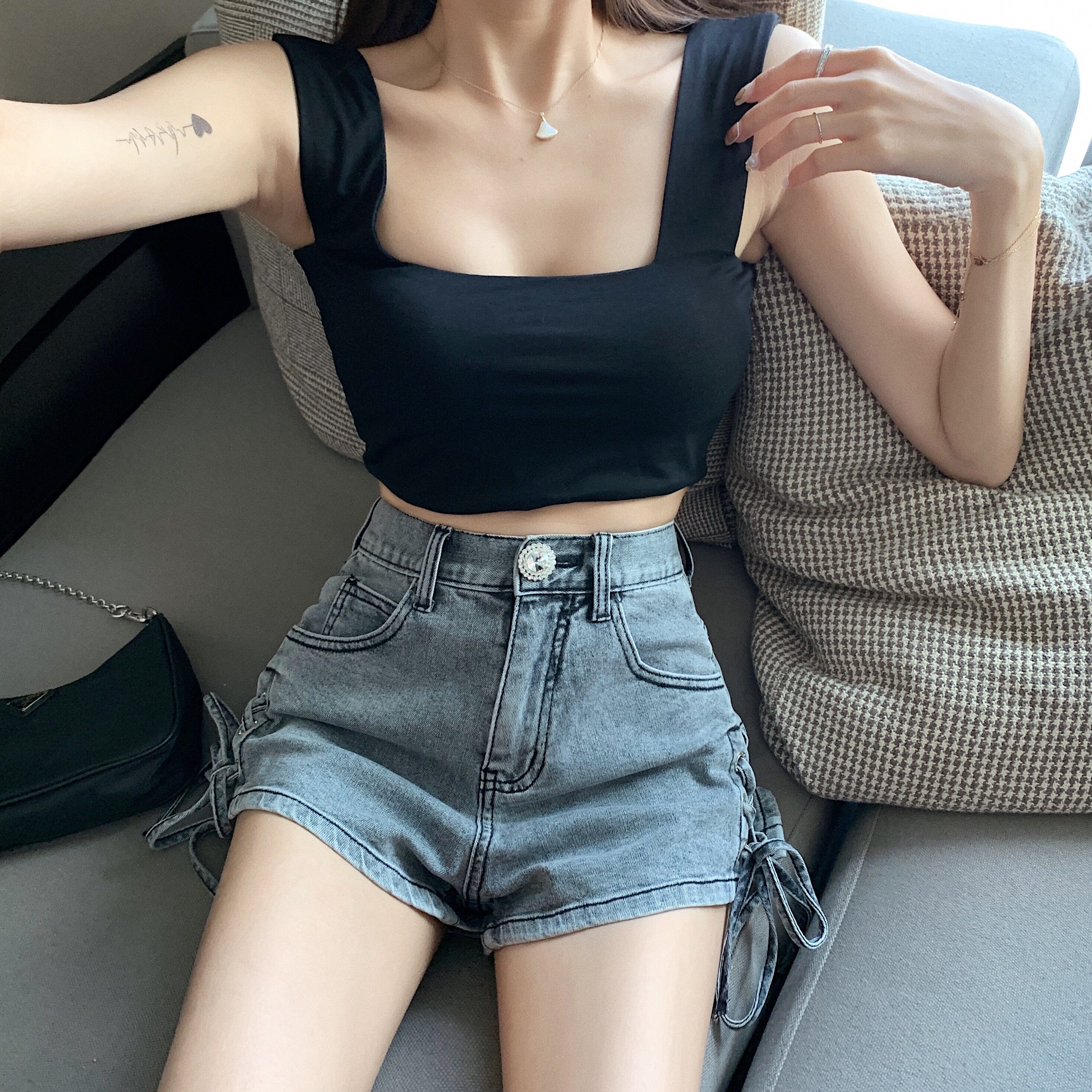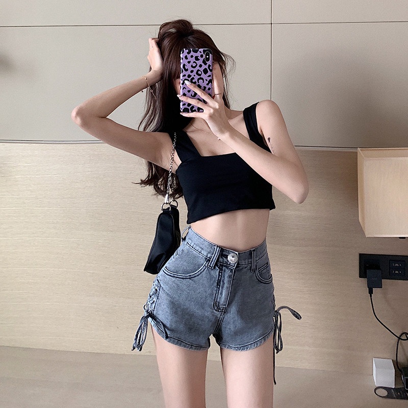 Летний брендовый ремень, сексуальные шорты, универсальные штаны, джинсы, популярно в интернете, с акцентом на бедрах, высокая талия, облегающий крой