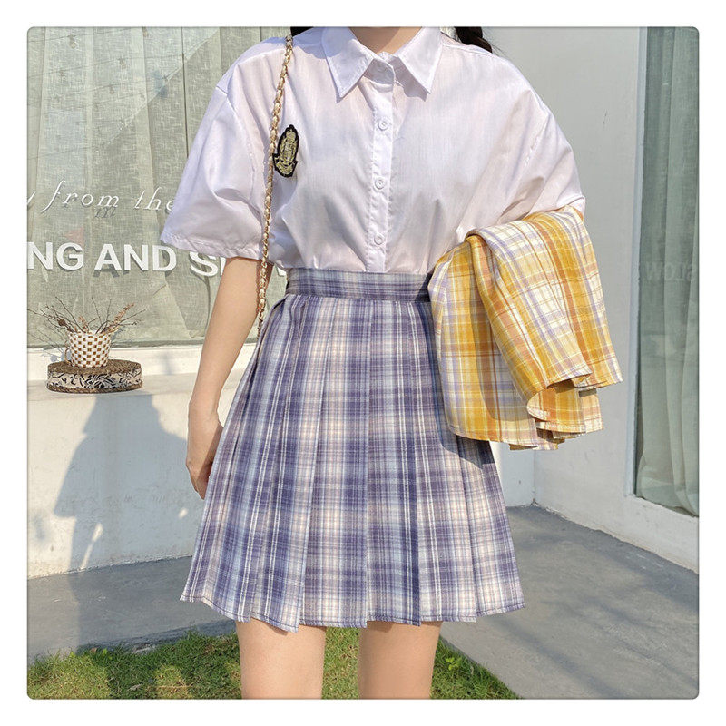 Студенческая юбка в складку, сиреневая базовая японская школьная юбка для школьников и студентов, большой размер