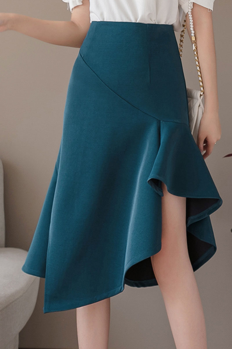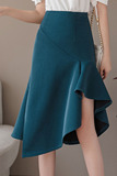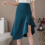 Летняя длинная юбка, коллекция 2021, высокая талия, с акцентом на бедрах, рыбий хвост, длина миди, А-силуэт