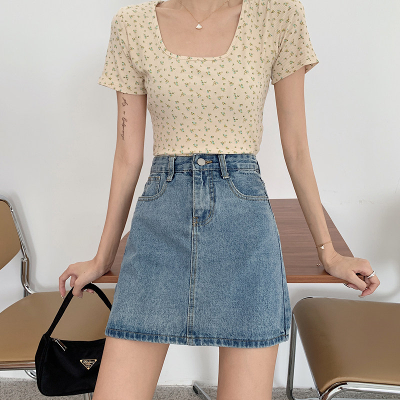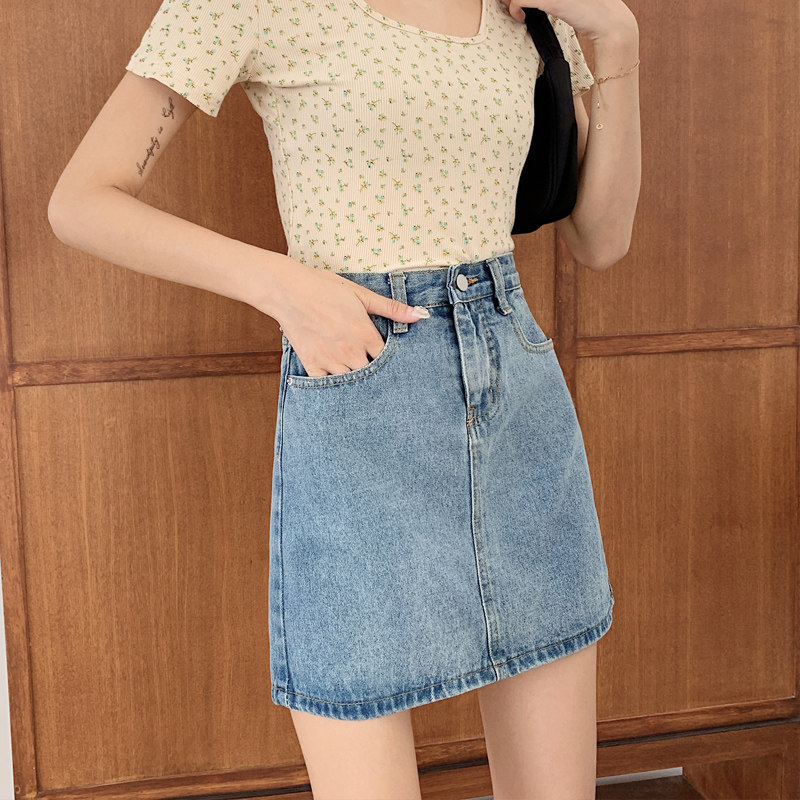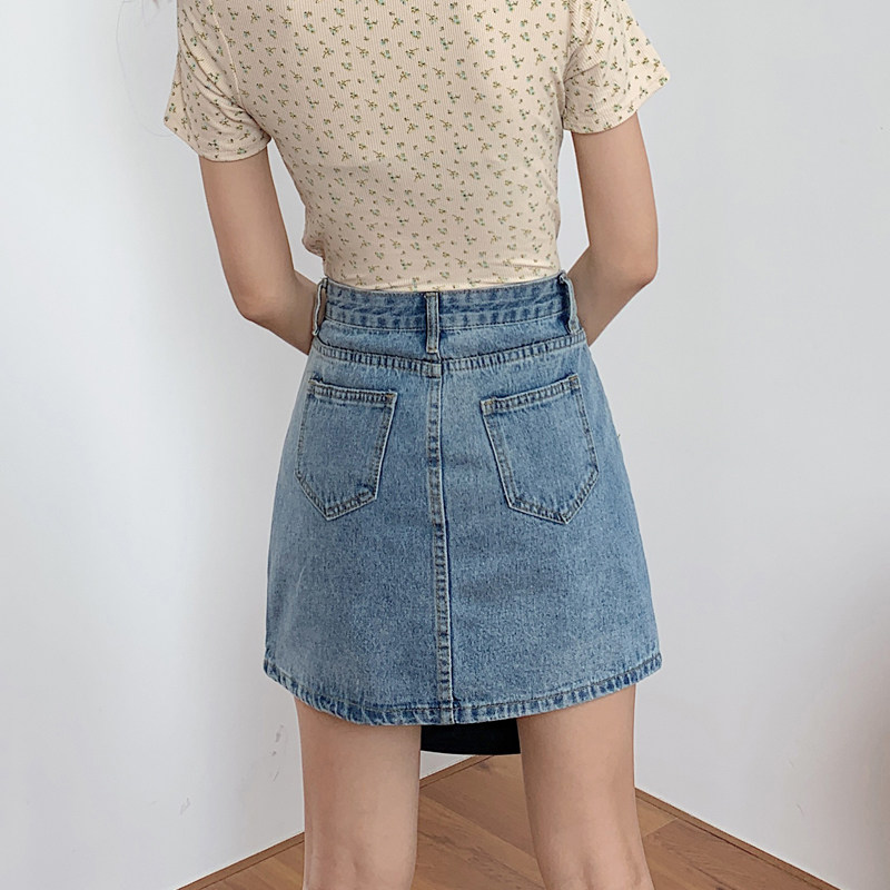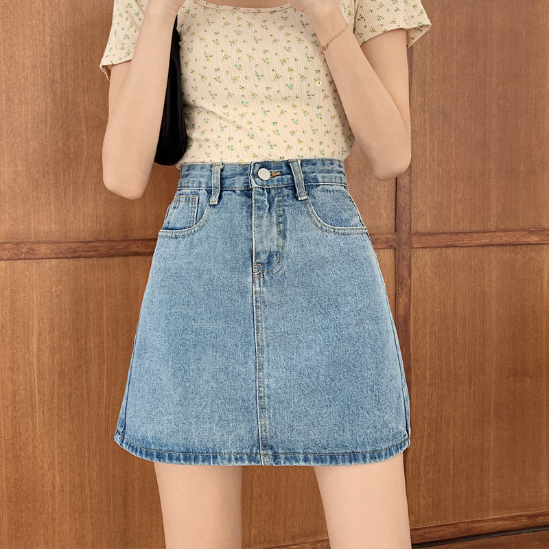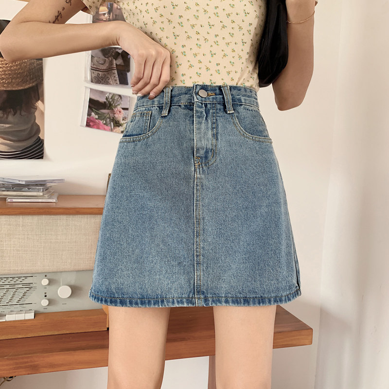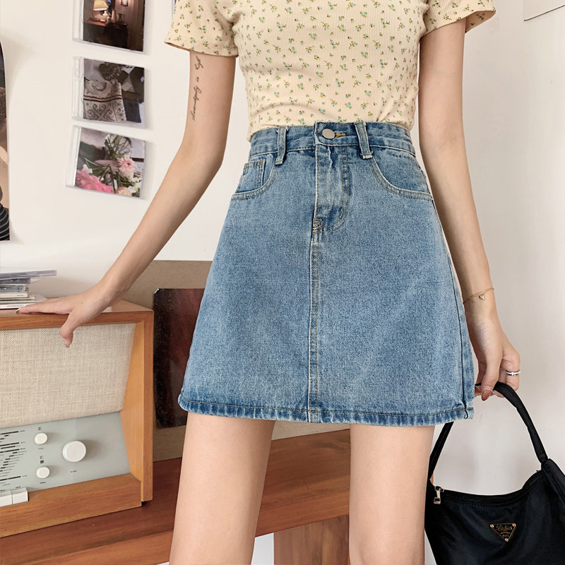 Джинсовая юбка, брендовая мини-юбка для школьников и студентов, в корейском стиле, большой размер, подходит для полных девушек, высокая талия, с акцентом на бедрах