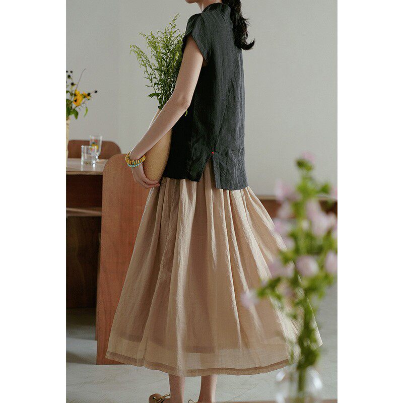 Легкая и тонкая летняя юбка, А-силуэт, большой размер, из хлопка и льна