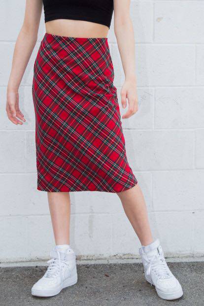 BrandyMelville, местное закупочное агентство CARA SKIRT Юбка средней длины в клетку из шотландского твила с разрезом и принтом