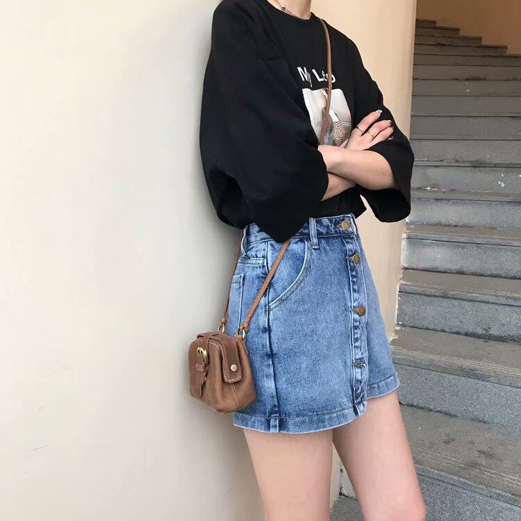Джинсовая юбка, защитное белье, штаны, 2024 года, большой размер, свободный крой, А-силуэт