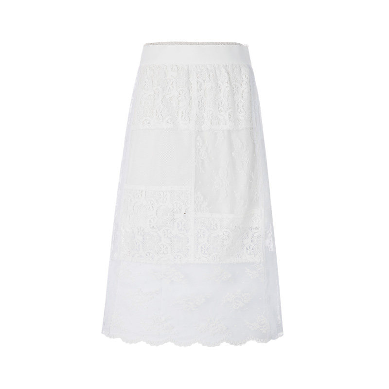 MCQ /McCot Белая двухслойная женская юбка с сетчатым кружевом и декором