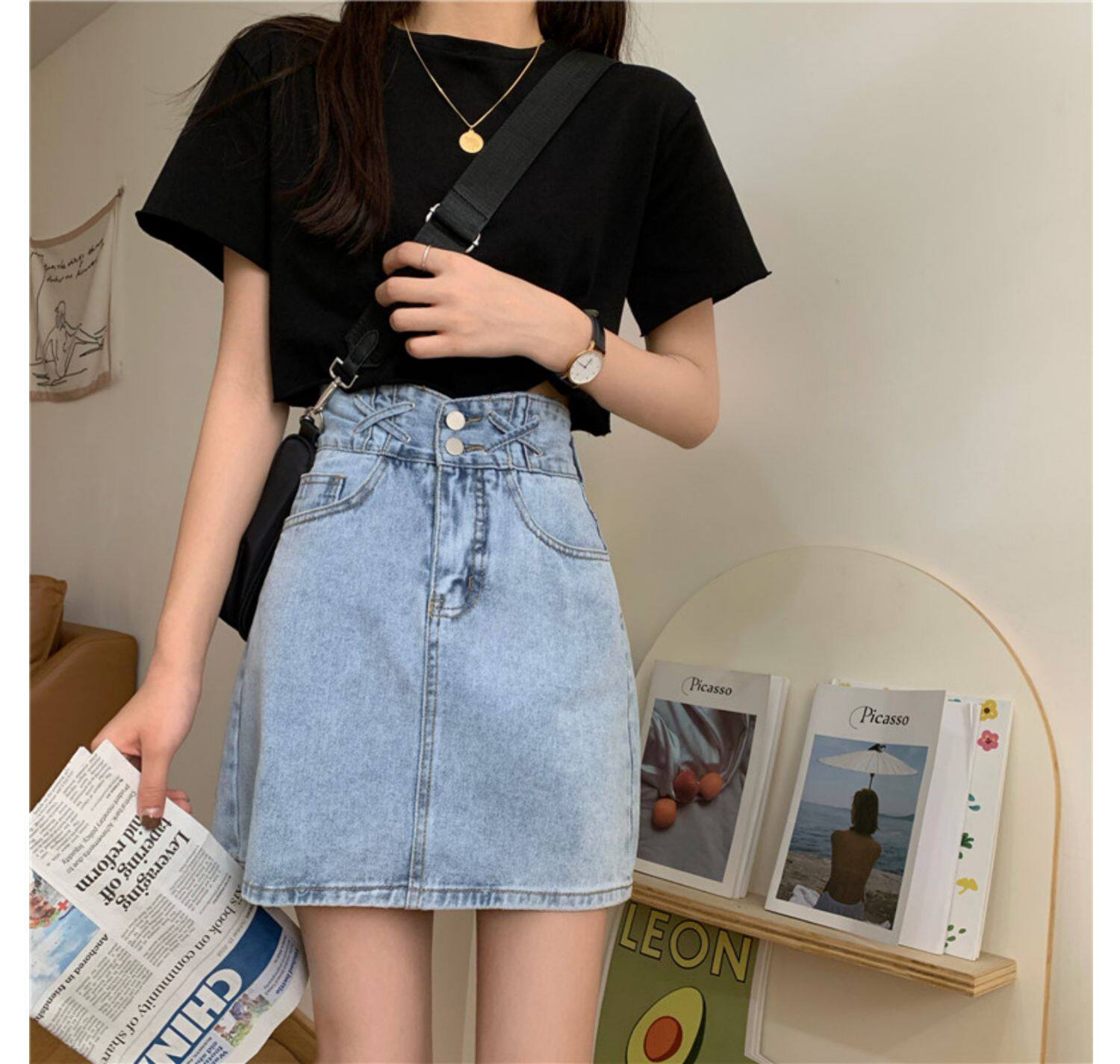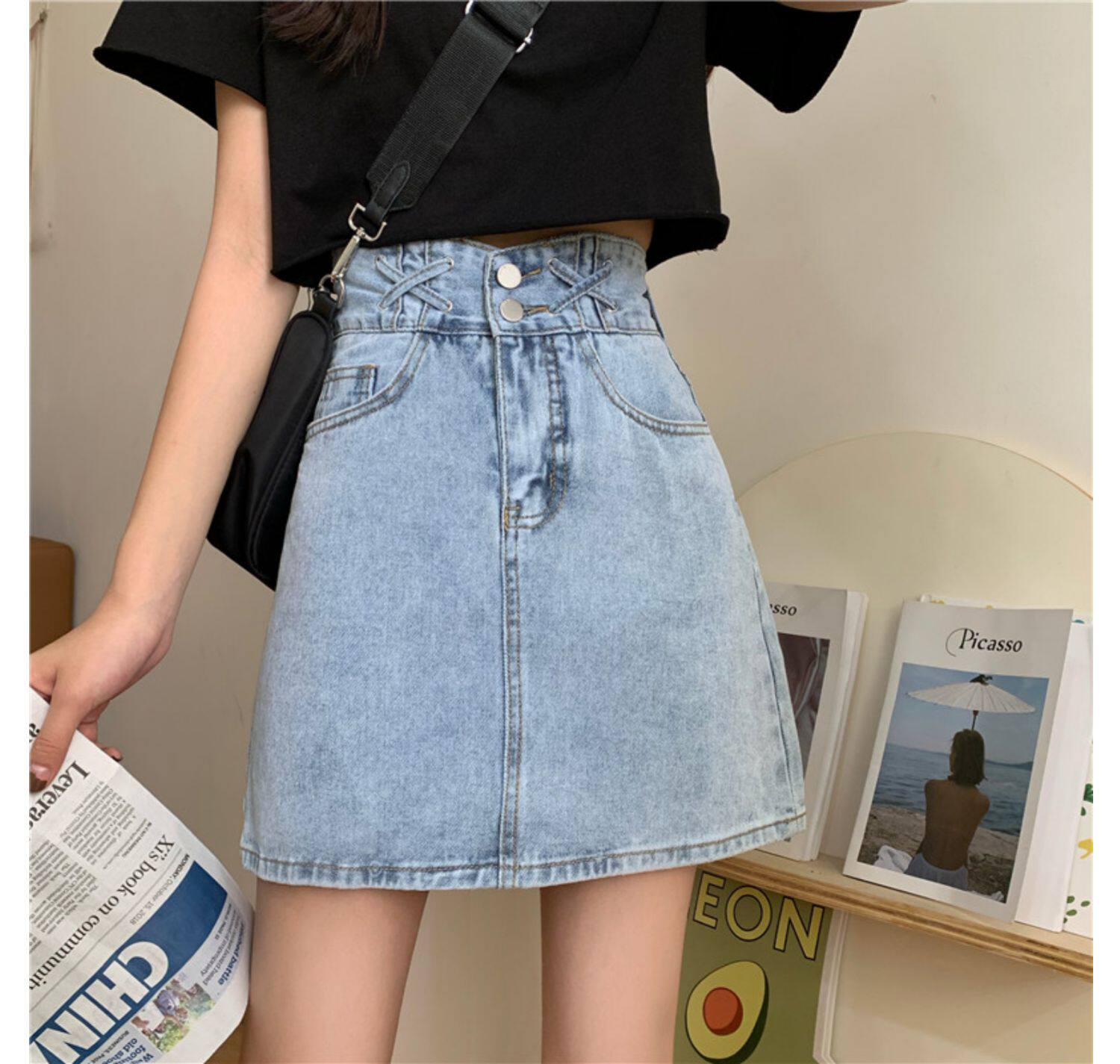 Дизайнерская летняя брендовая приталенная джинсовая юбка, большой размер, подходит для полных девушек, высокая талия, тренд сезона, А-силуэт