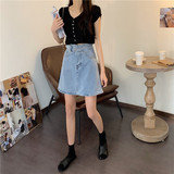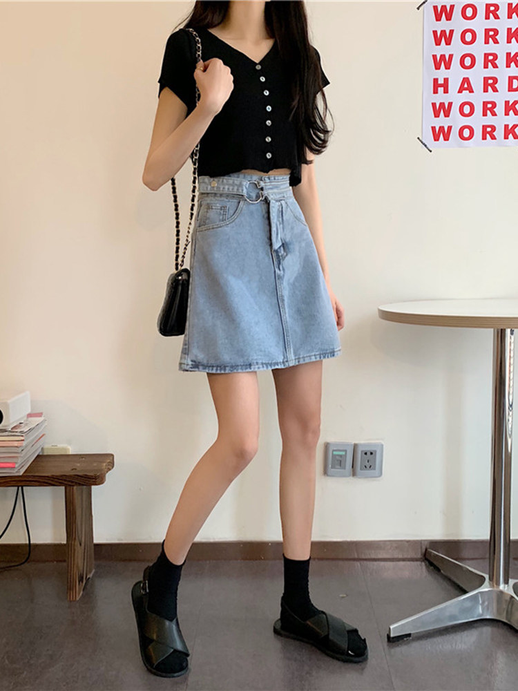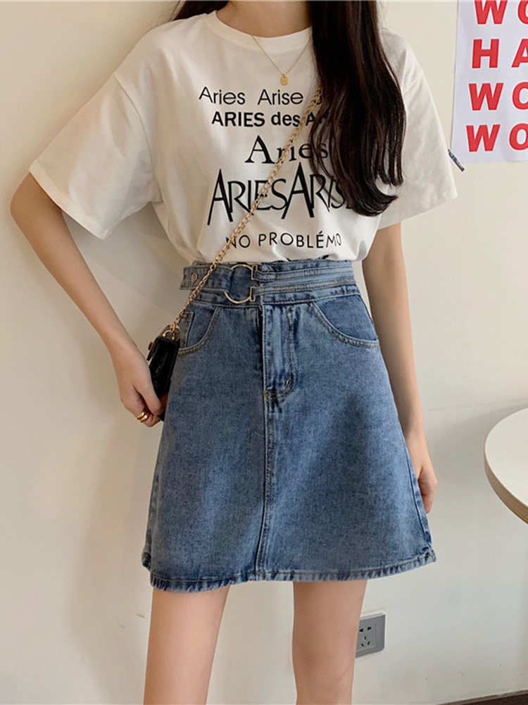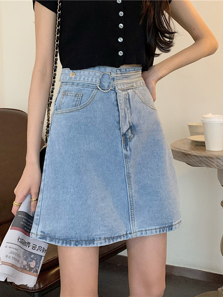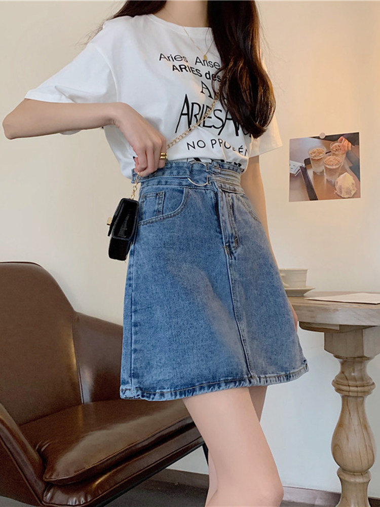 Осенняя джинсовая юбка для школьников и студентов, высокая талия, большой размер, А-силуэт, с акцентом на бедрах