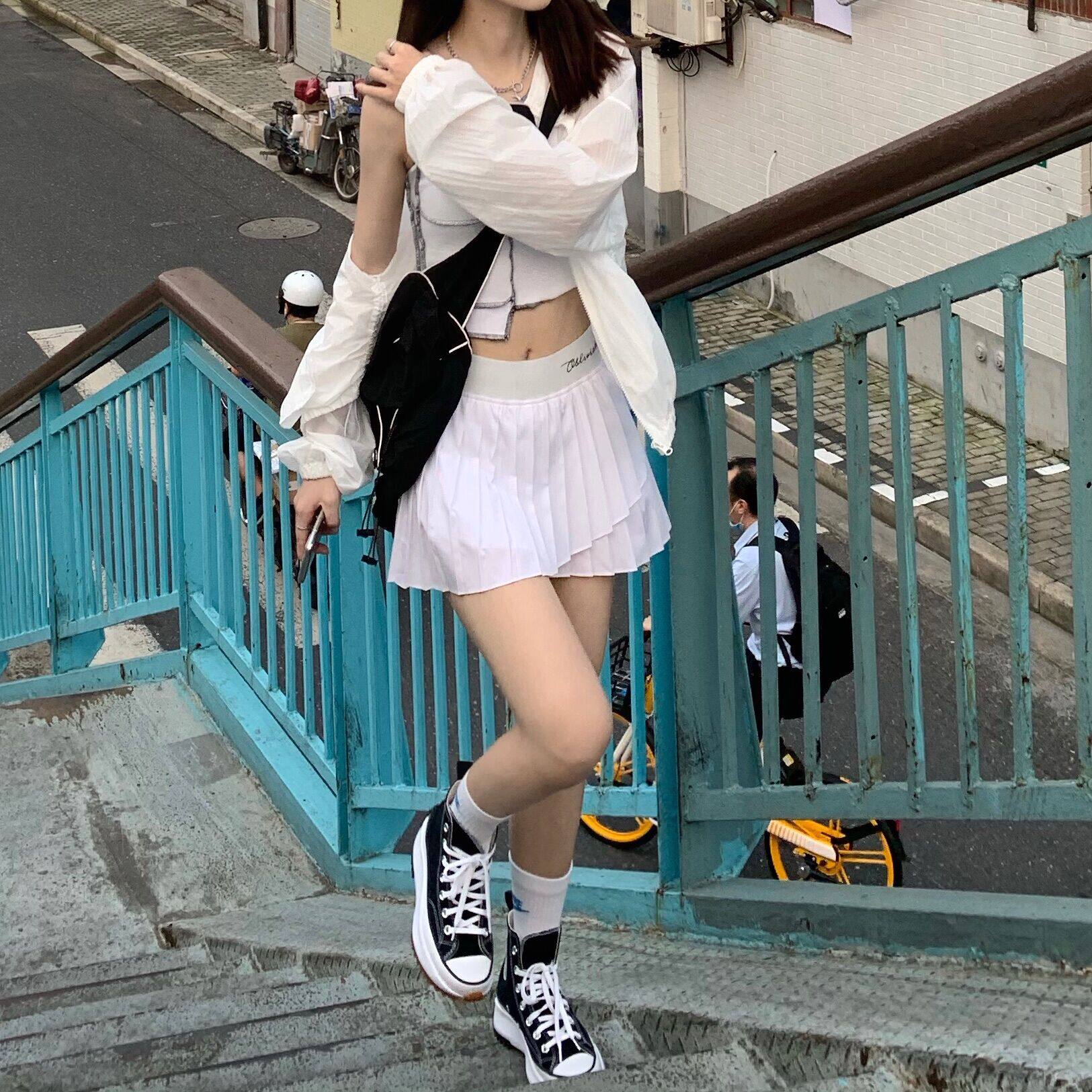 Теннисная дизайнерская мини-юбка, белая юбка в складку, штаны, тренд сезона, высокая талия