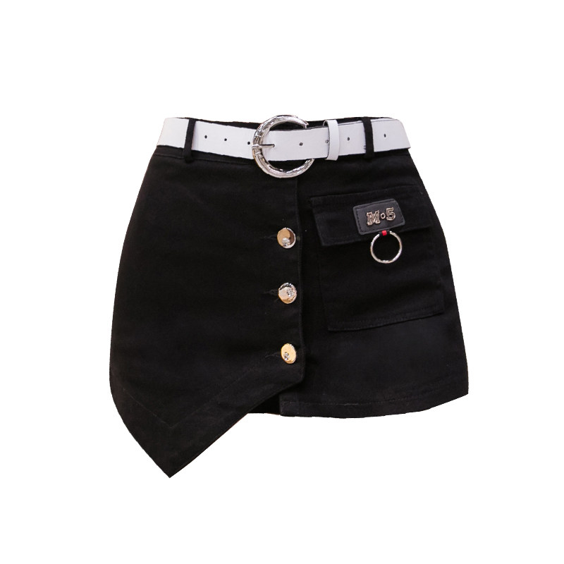 Белая джинсовая юбка, шорты, штаны, модный комплект, 2020, городской стиль, А-силуэт, высокая талия, с акцентом на бедрах