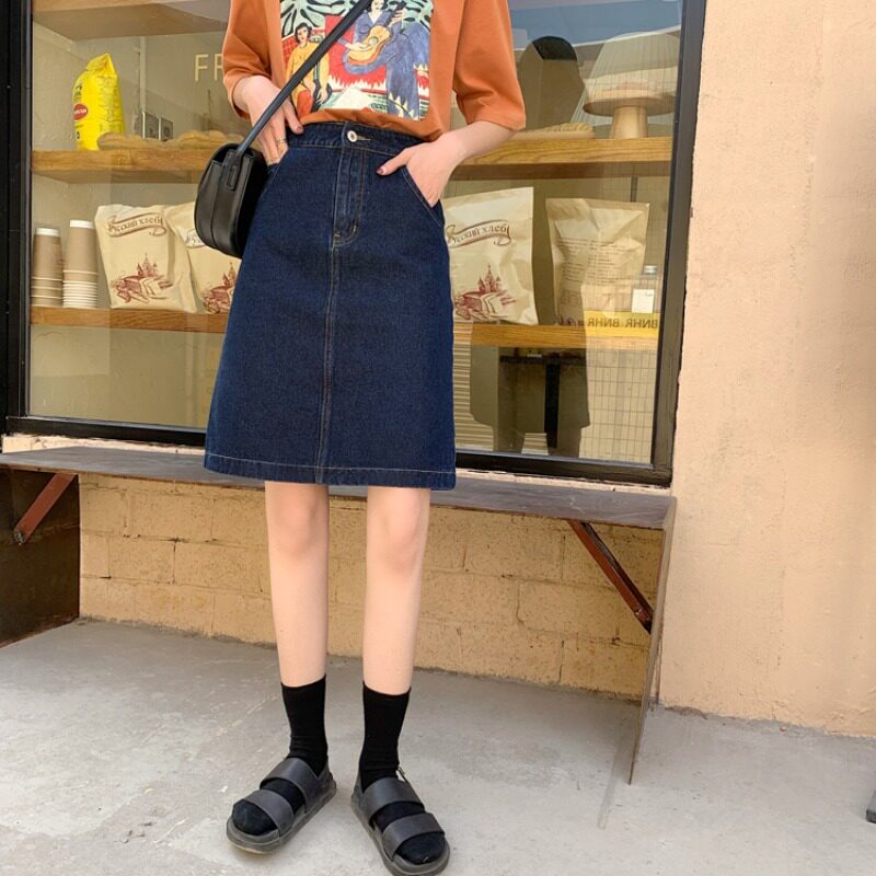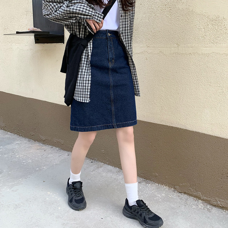 Поясная сумка, ретро демисезонная дизайнерская джинсовая юбка, высокая талия, большой размер, тренд сезона, А-силуэт