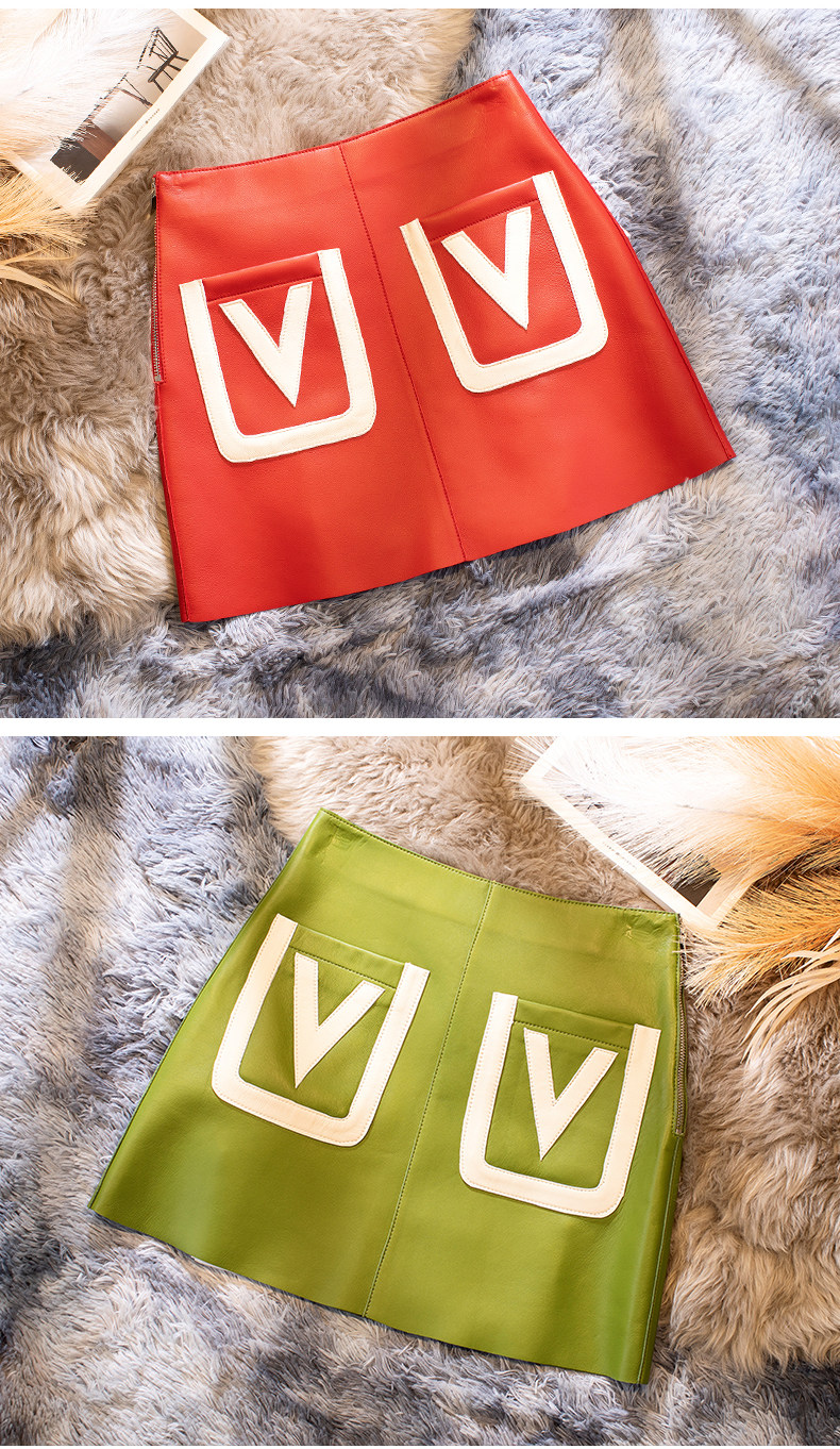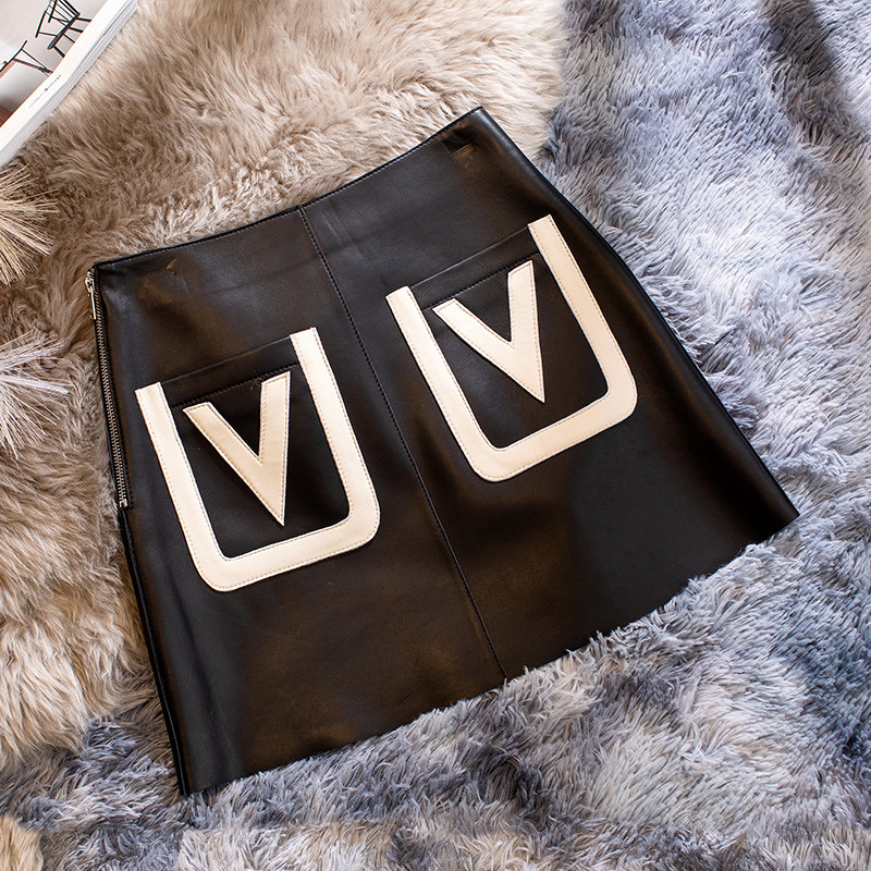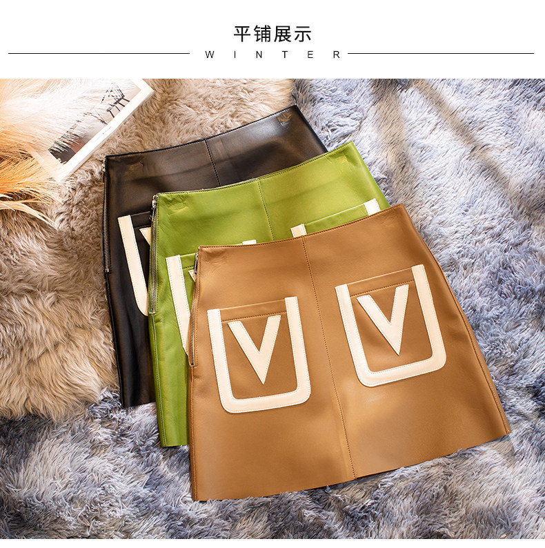 Приталенная демисезонная юбка, 2021 года, из натуральной кожи, А-силуэт, высокая талия, с акцентом на бедрах