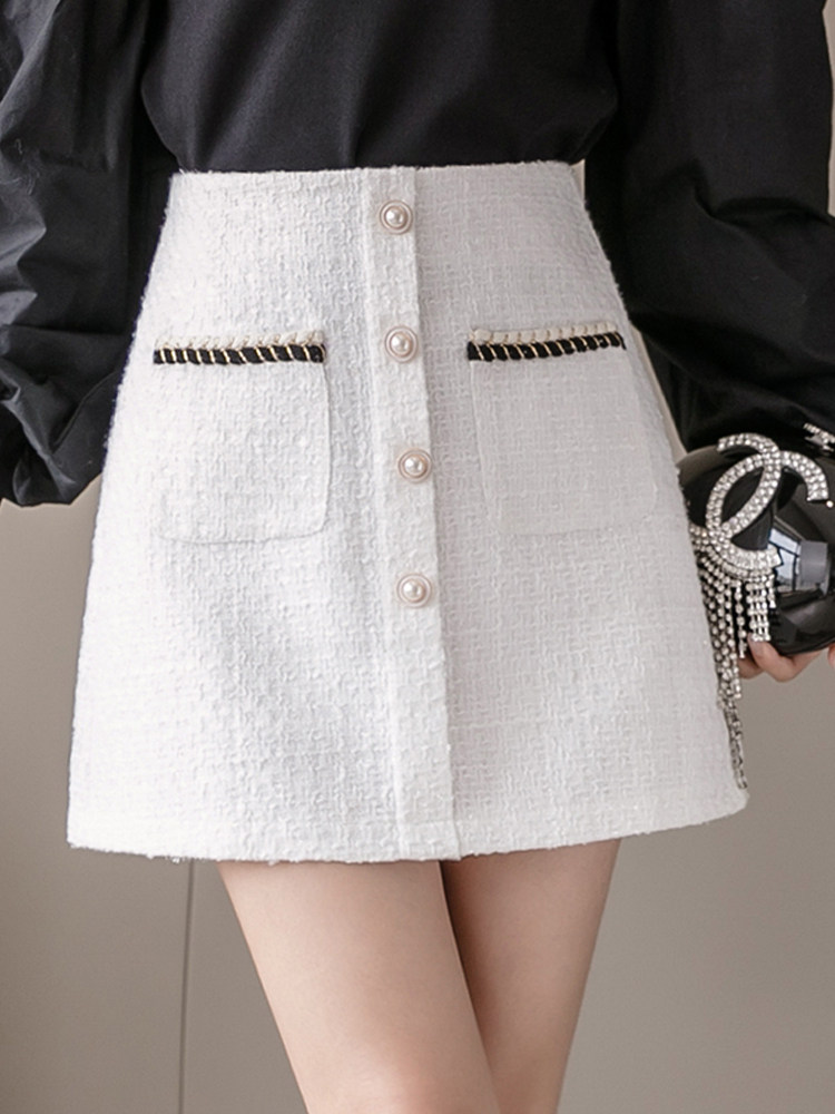 Белая осенняя модная юбка, коллекция 2023, высокая талия