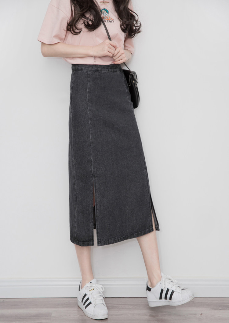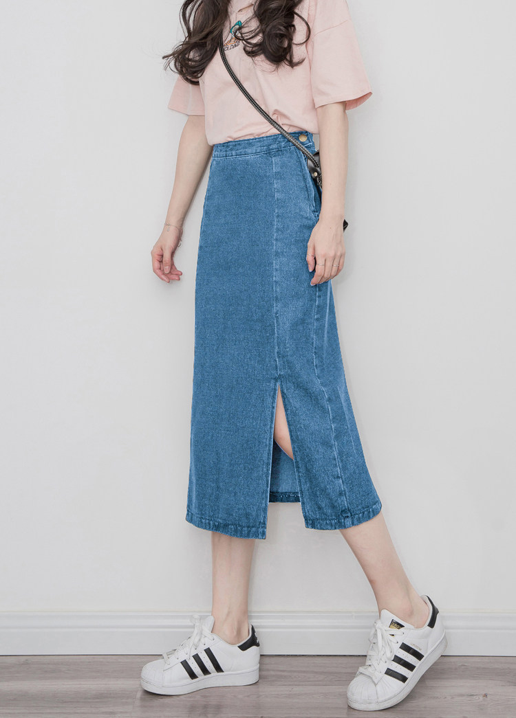 Летняя джинсовая юбка, осенняя длинная юбка, средней длины, свободный прямой крой, высокая талия