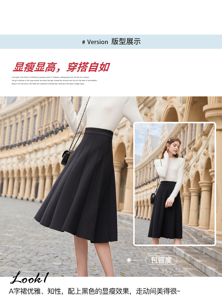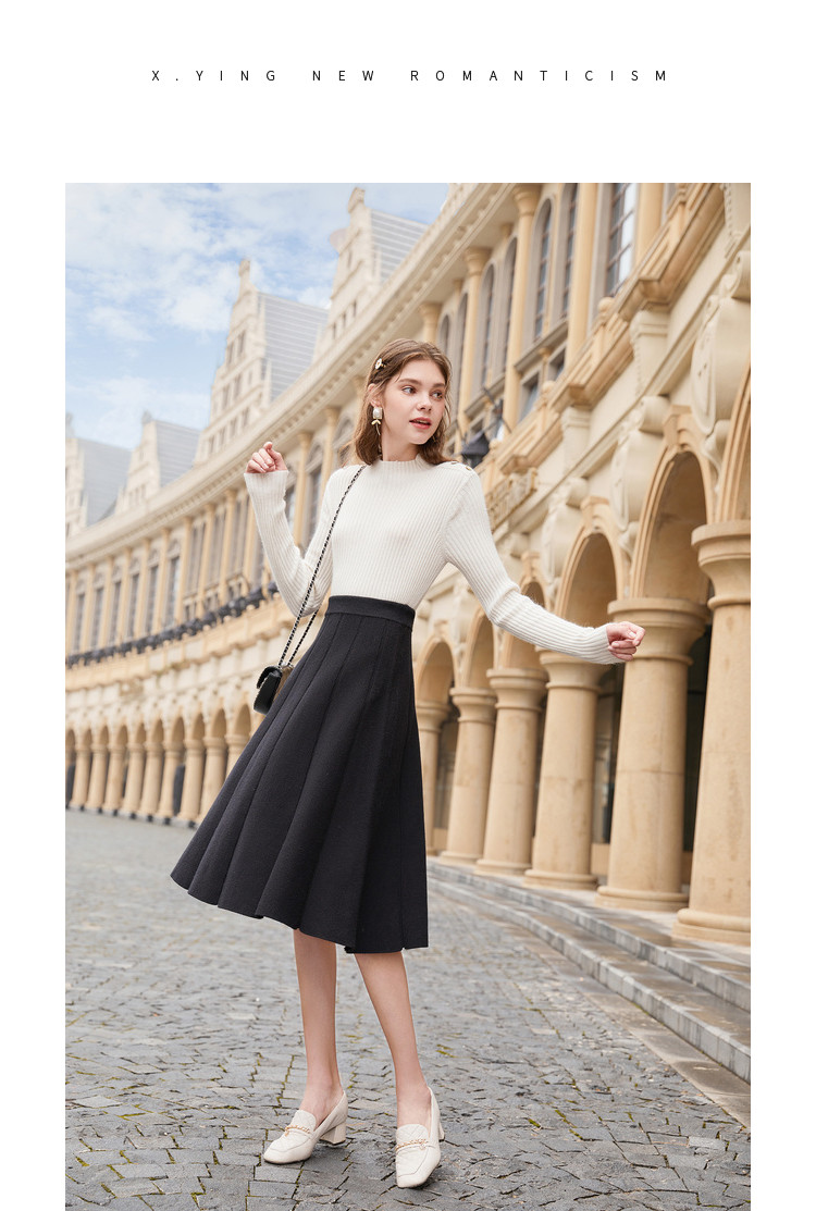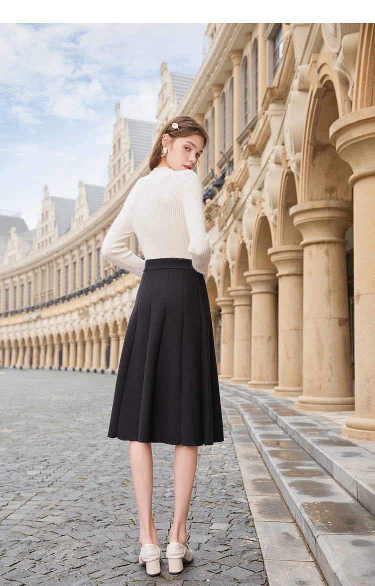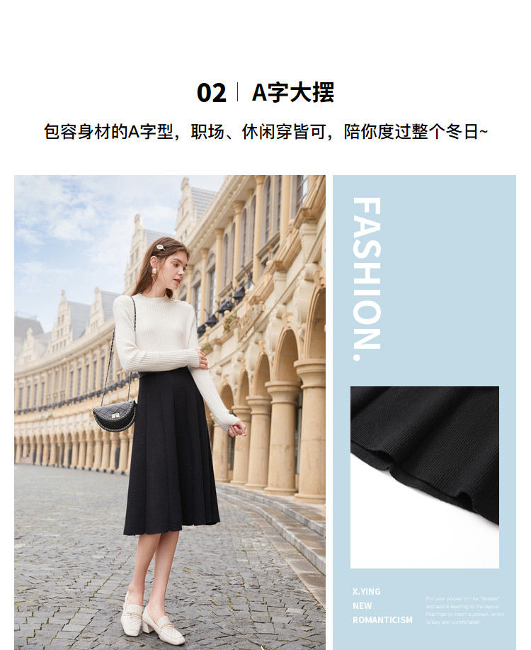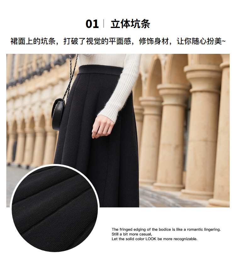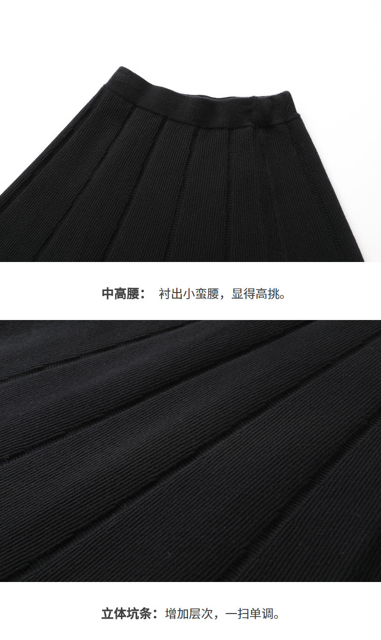 香影 Трикотажная юбка, демисезонный длинный черный пуховик, 2020, городской стиль, яркий броский стиль, высокая талия, длина миди, длина макси