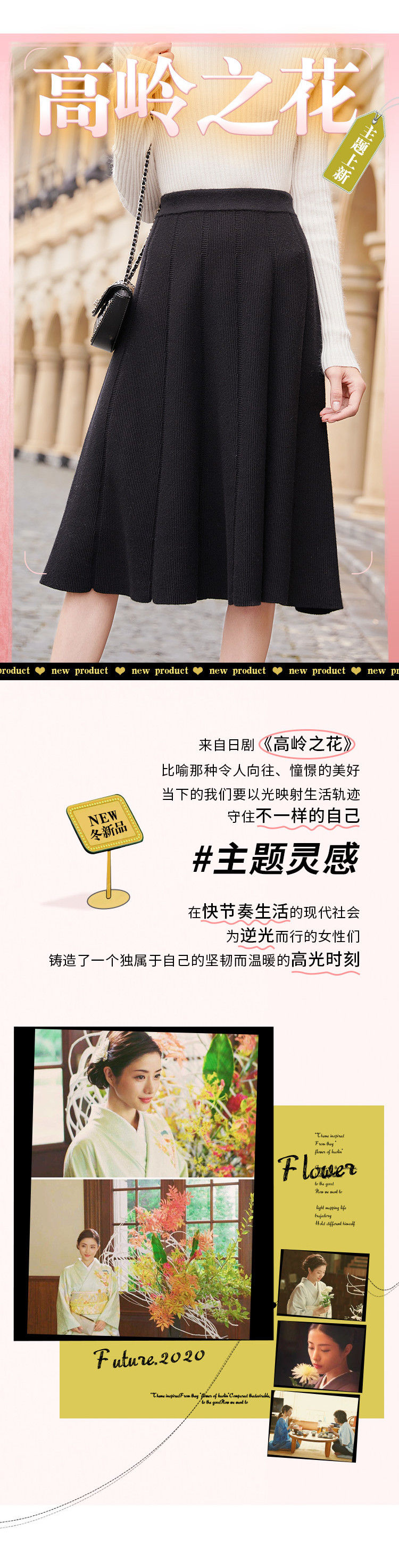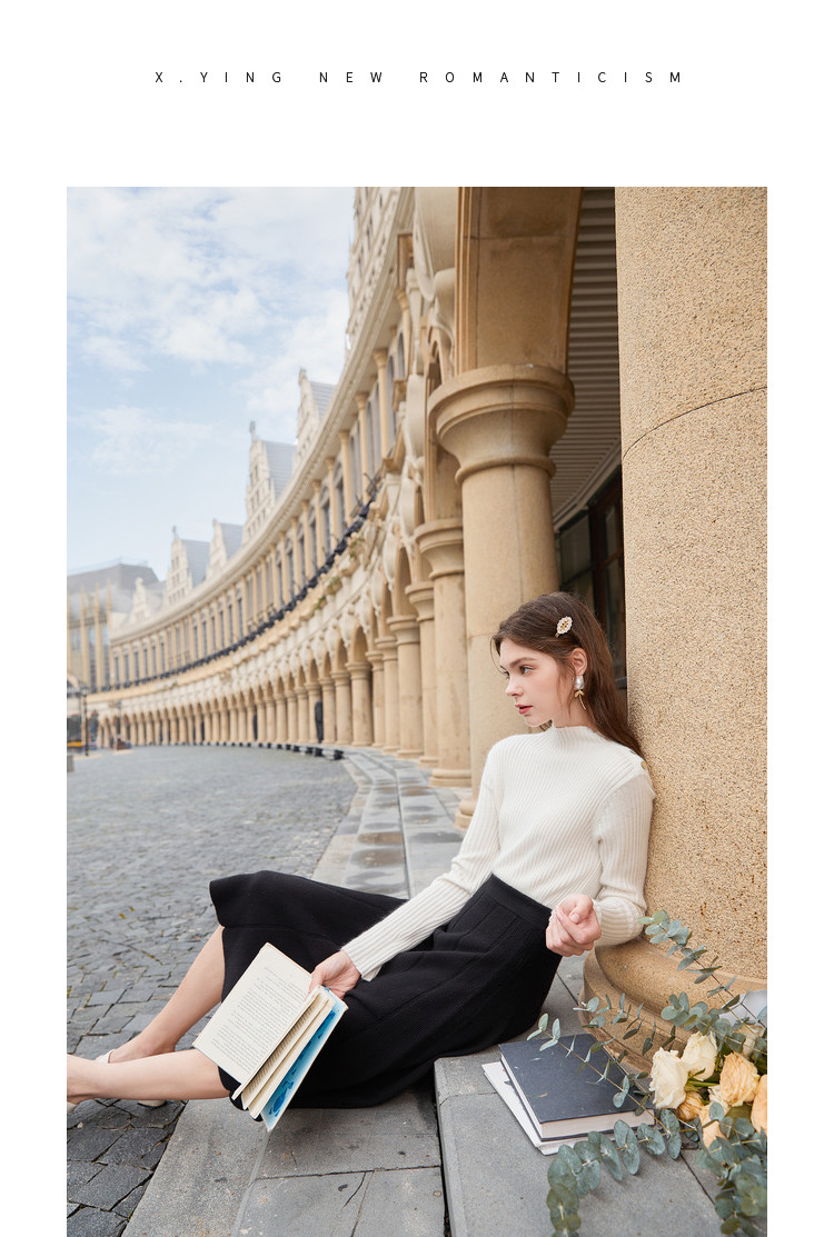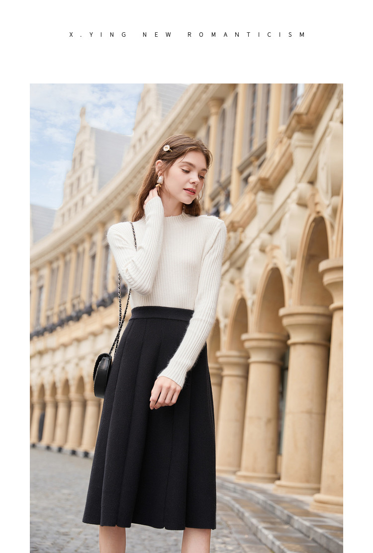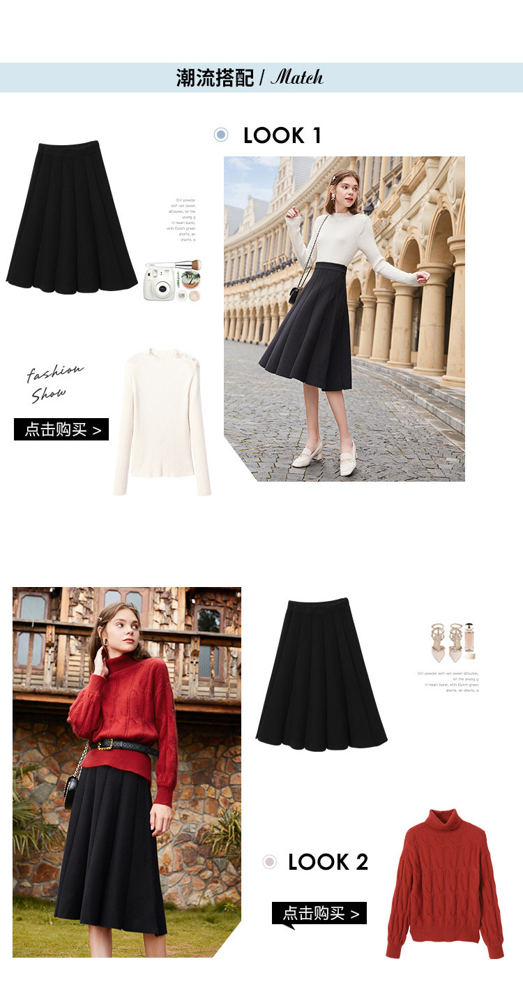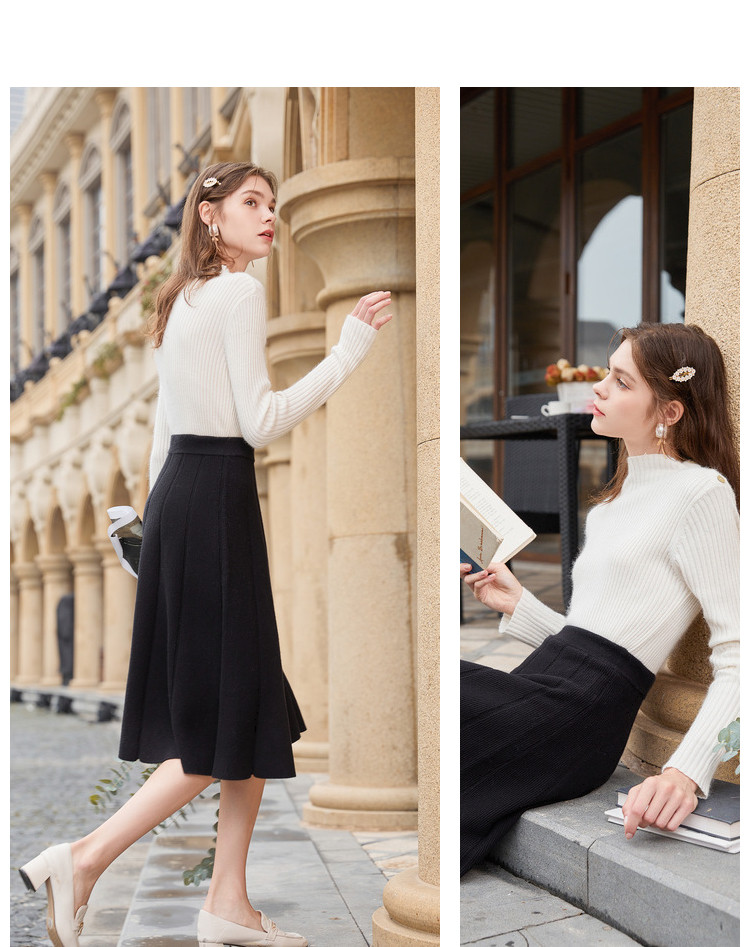 香影 Трикотажная юбка, демисезонный длинный черный пуховик, 2020, городской стиль, яркий броский стиль, высокая талия, длина миди, длина макси