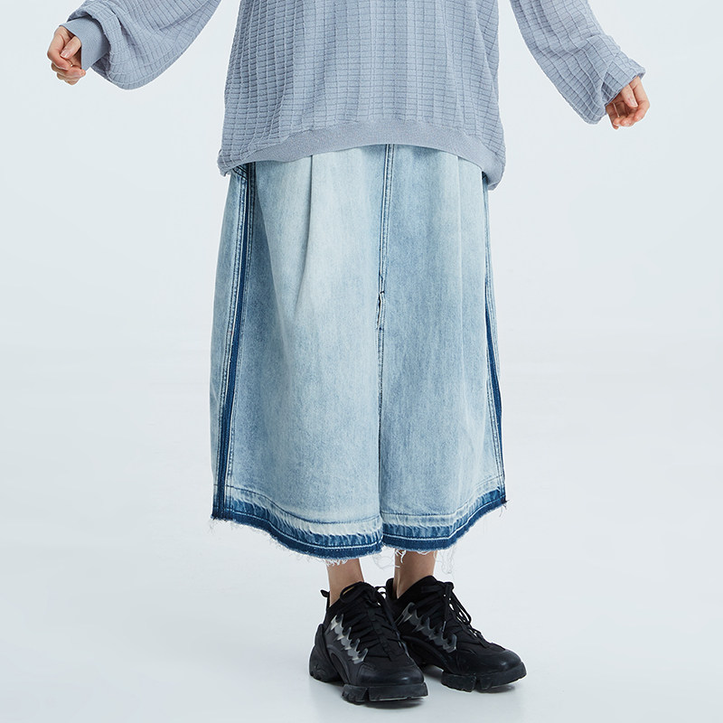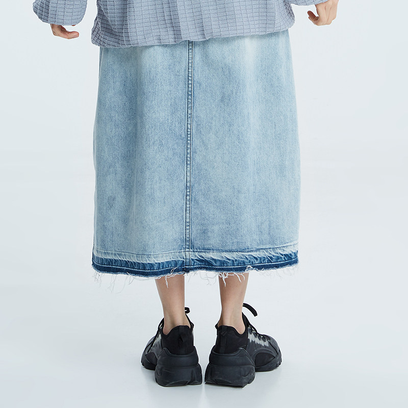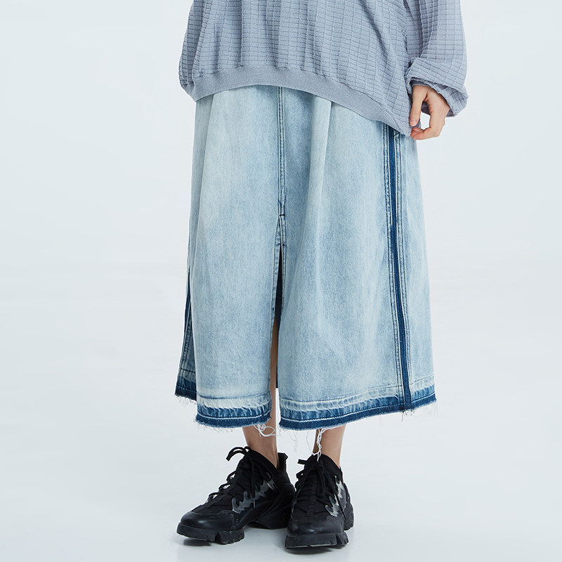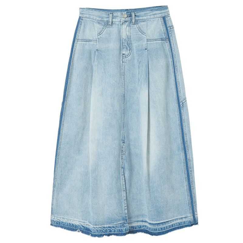 theMSLAN Весенне-летняя женская модная простая джинсовая юбка с завышенной талией и разрезом спереди mslan BAN632201